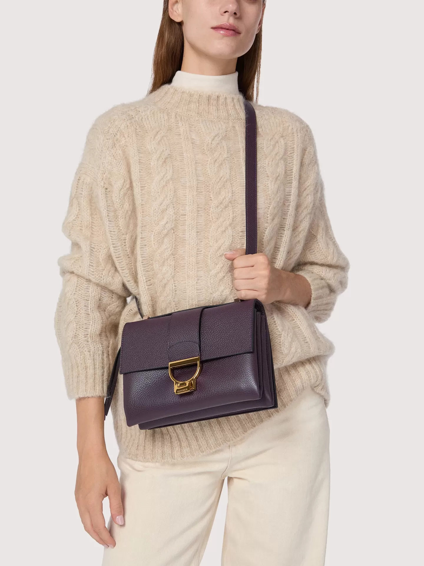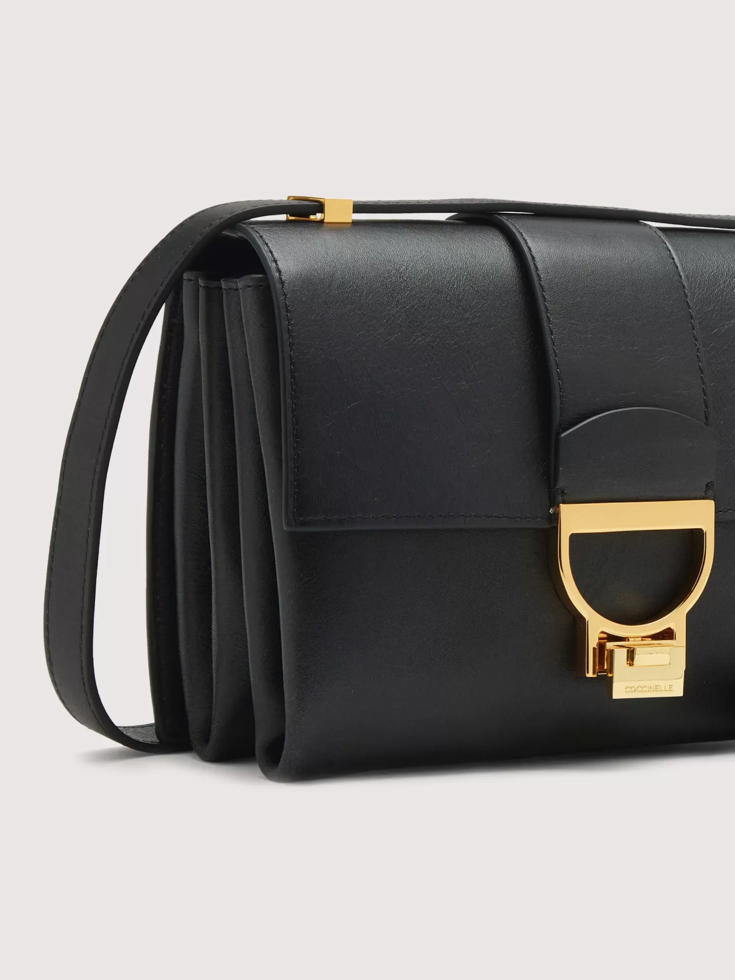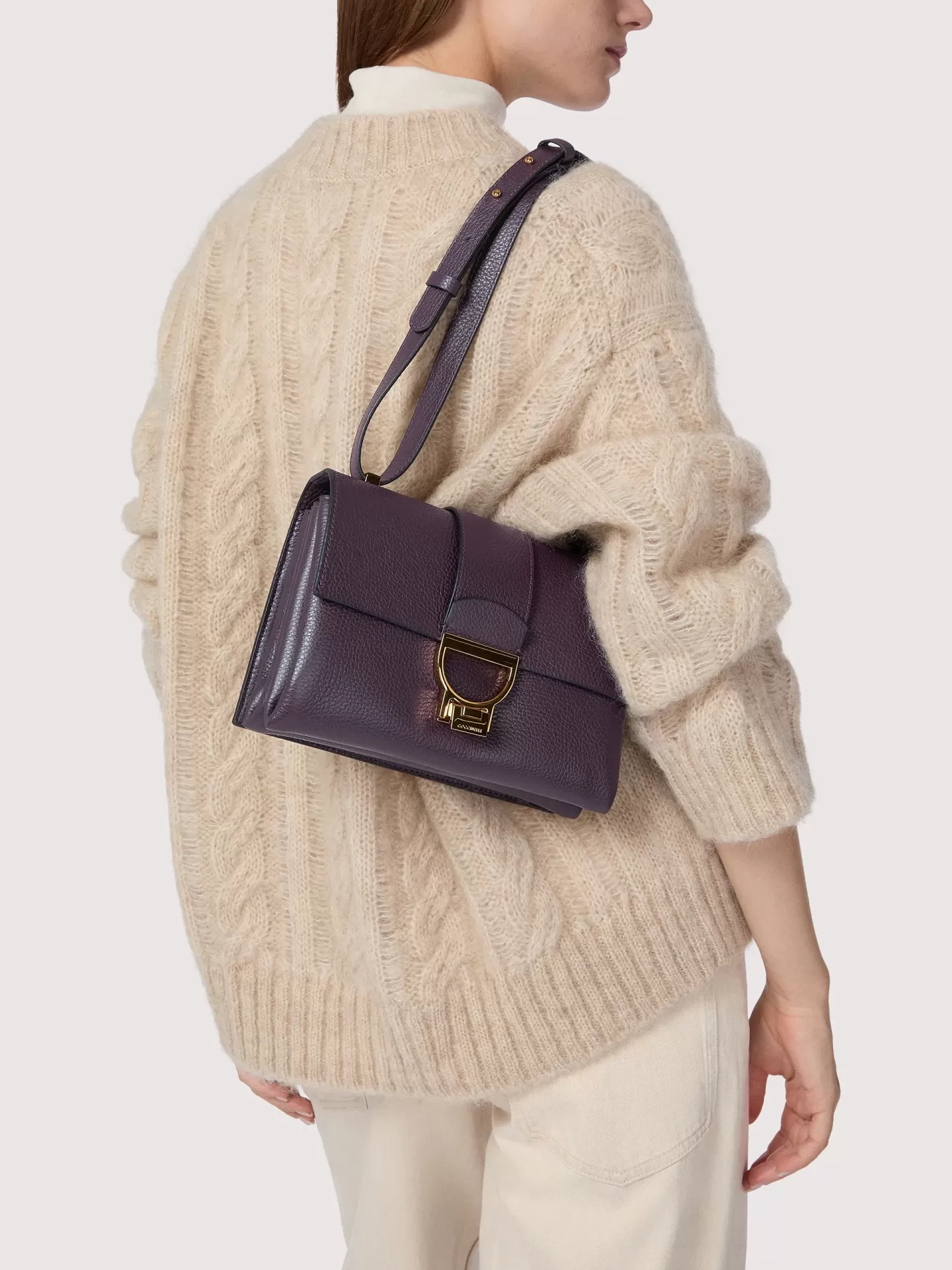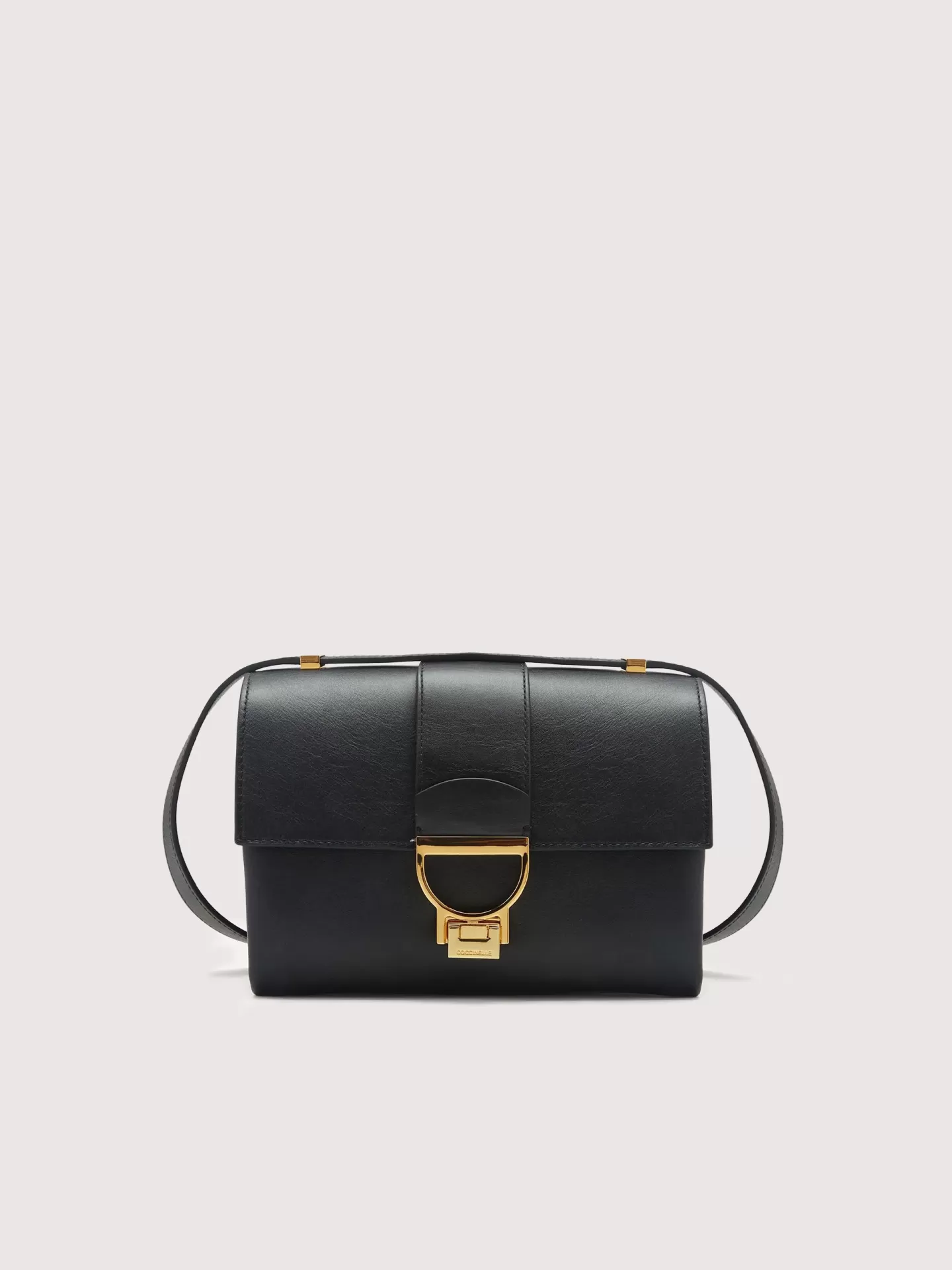 Arlettis line features the iconic metal clasp and sliding leather shoulder strap