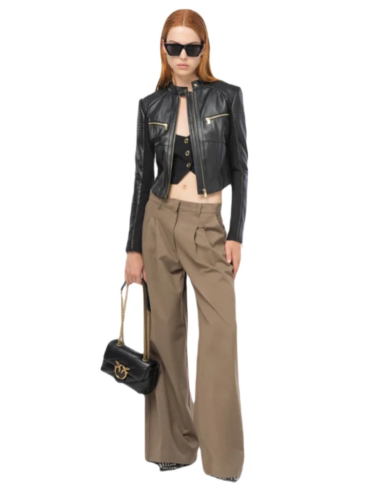 An iconic piece that blends urban sophistication and moto-chic inspiration, ideal to elevate casual looks or style with wide-leg trousers and statement accessories.