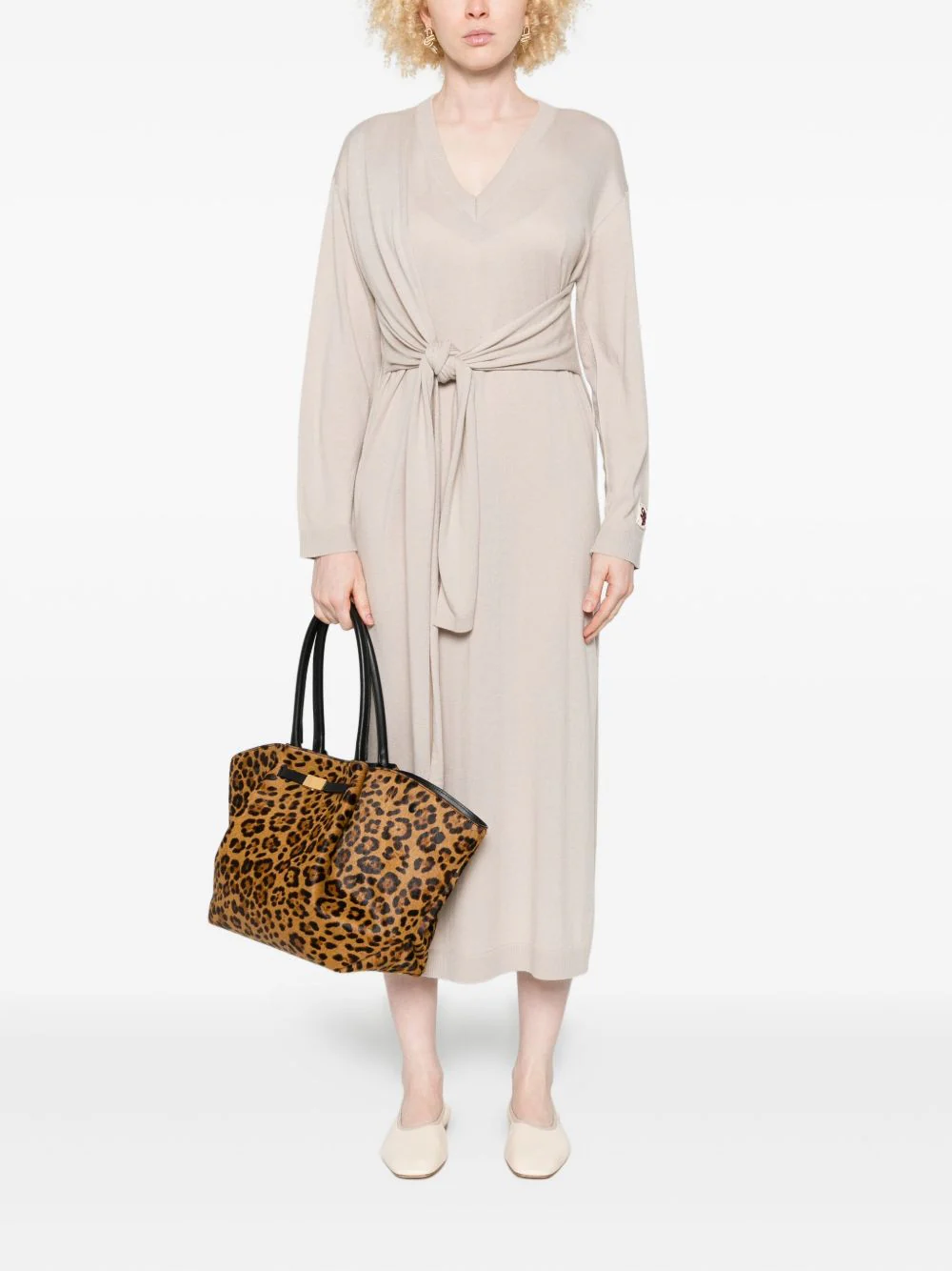 Beige knit midi dress with knot detail — soft power meets quiet elegance.