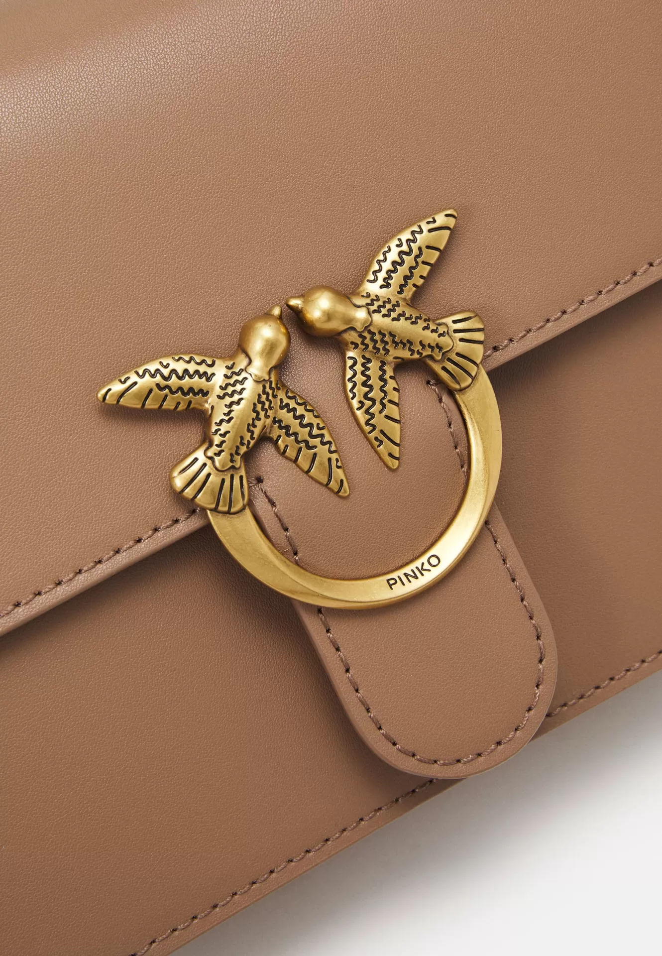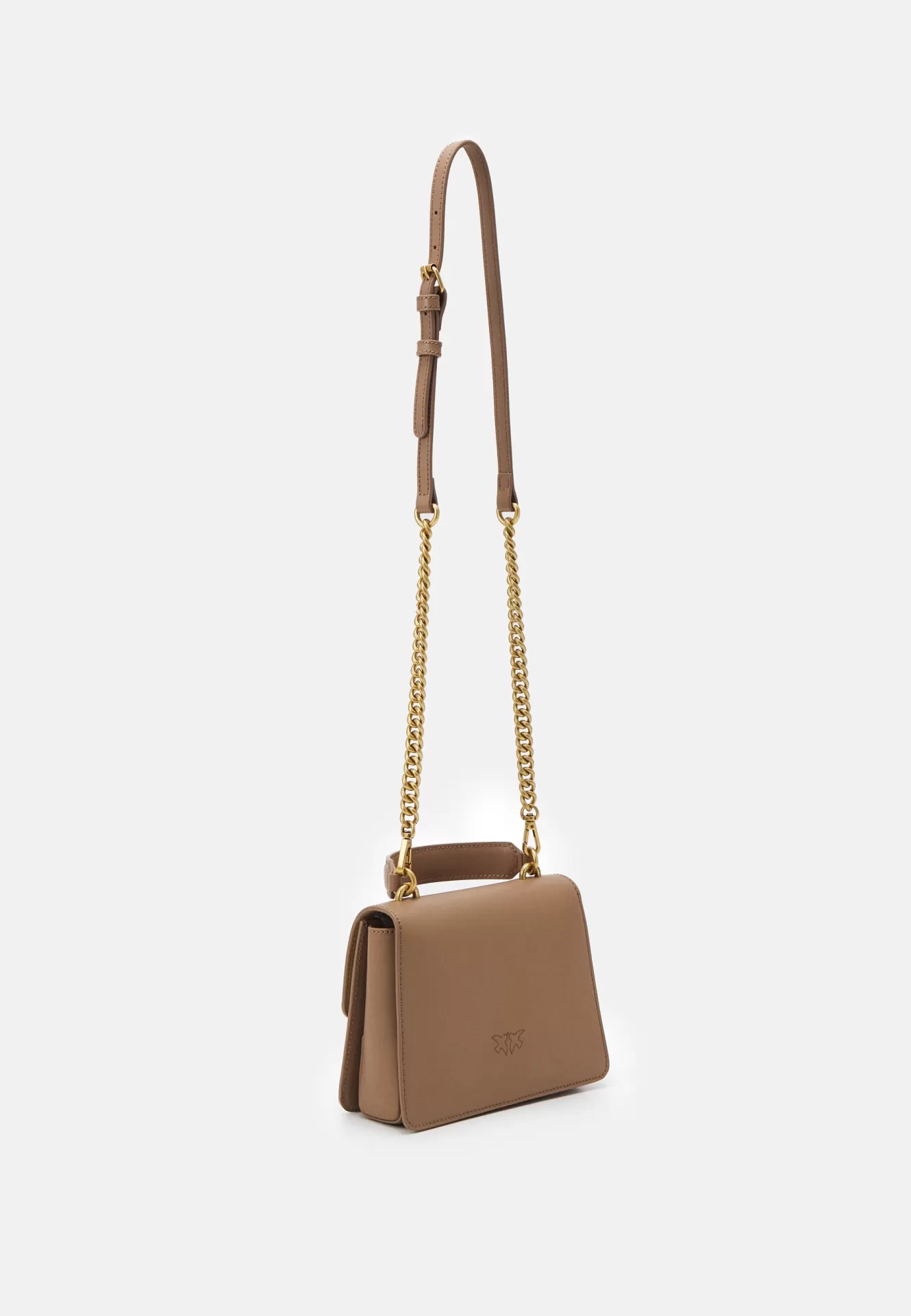 A Mini Love Bag One Top Handle Light da PINKO surge numa versão irresistivelmente suave em tom biscuit, símbolo de elegância discreta e versatilidade.