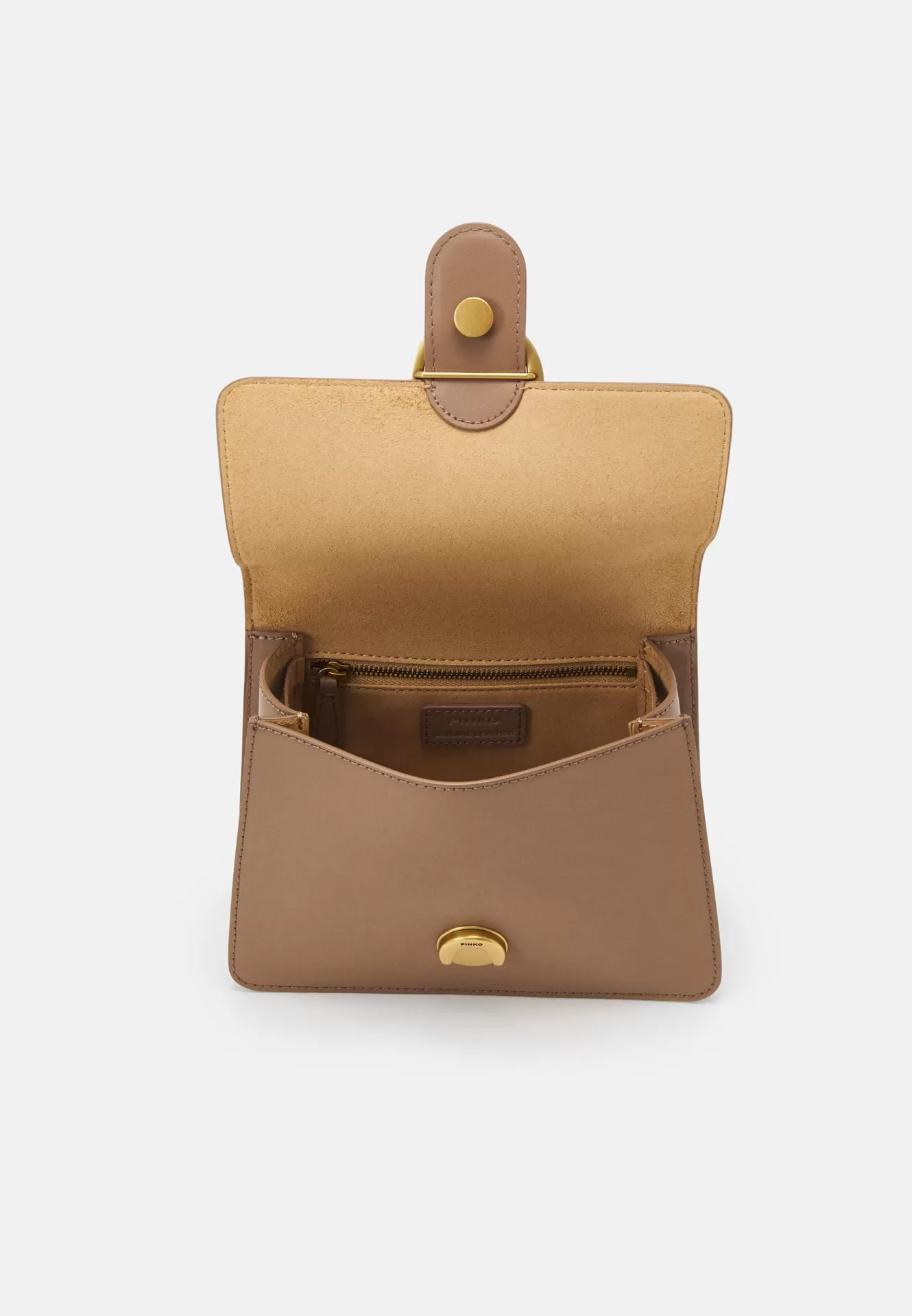 The PINKO Mini Love Bag One Top Handle Light comes in an elegant biscuit hue, exuding natural sophistication.