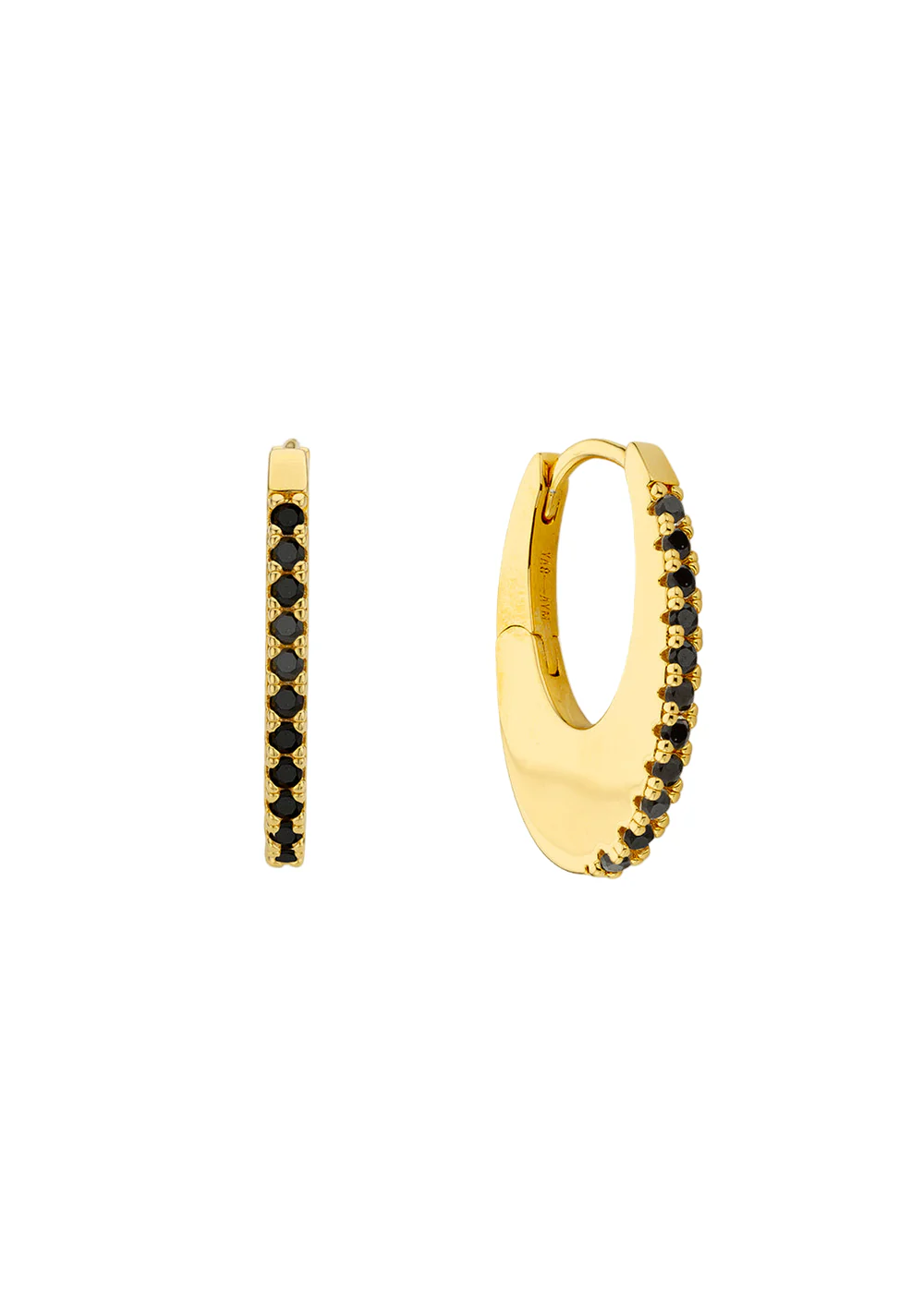 The BLACK STELLAR hoops by MYA—BAY bring a bold twist to a signature favourite. Crafted in 24k recycled gold plating and set with shimmering black crystals, they strike the perfect balance between light and edge.