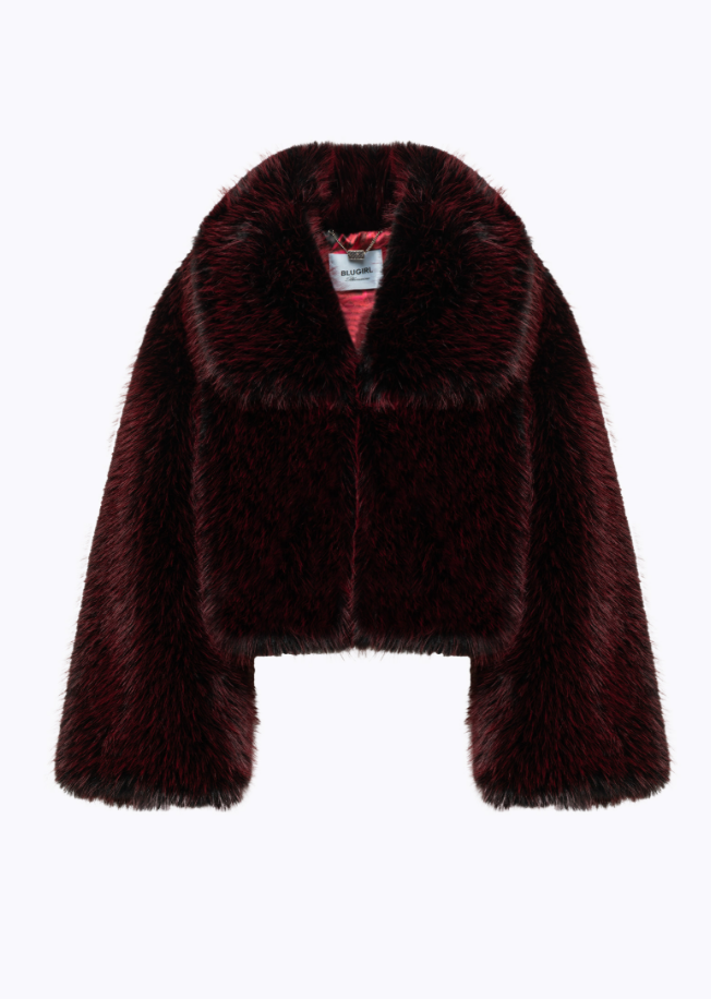 Wine faux-fur jacket — bold glamour meets modern comfort.