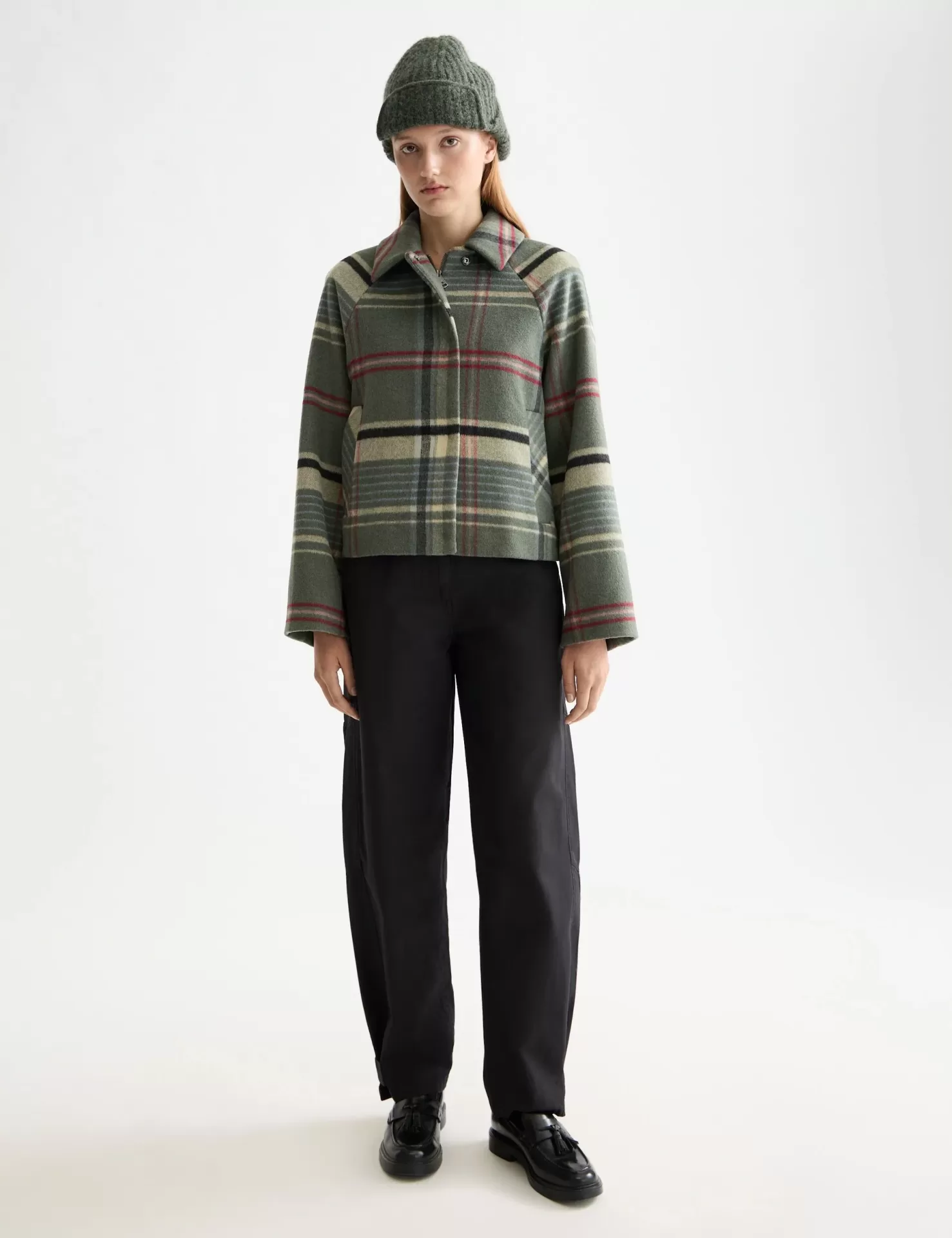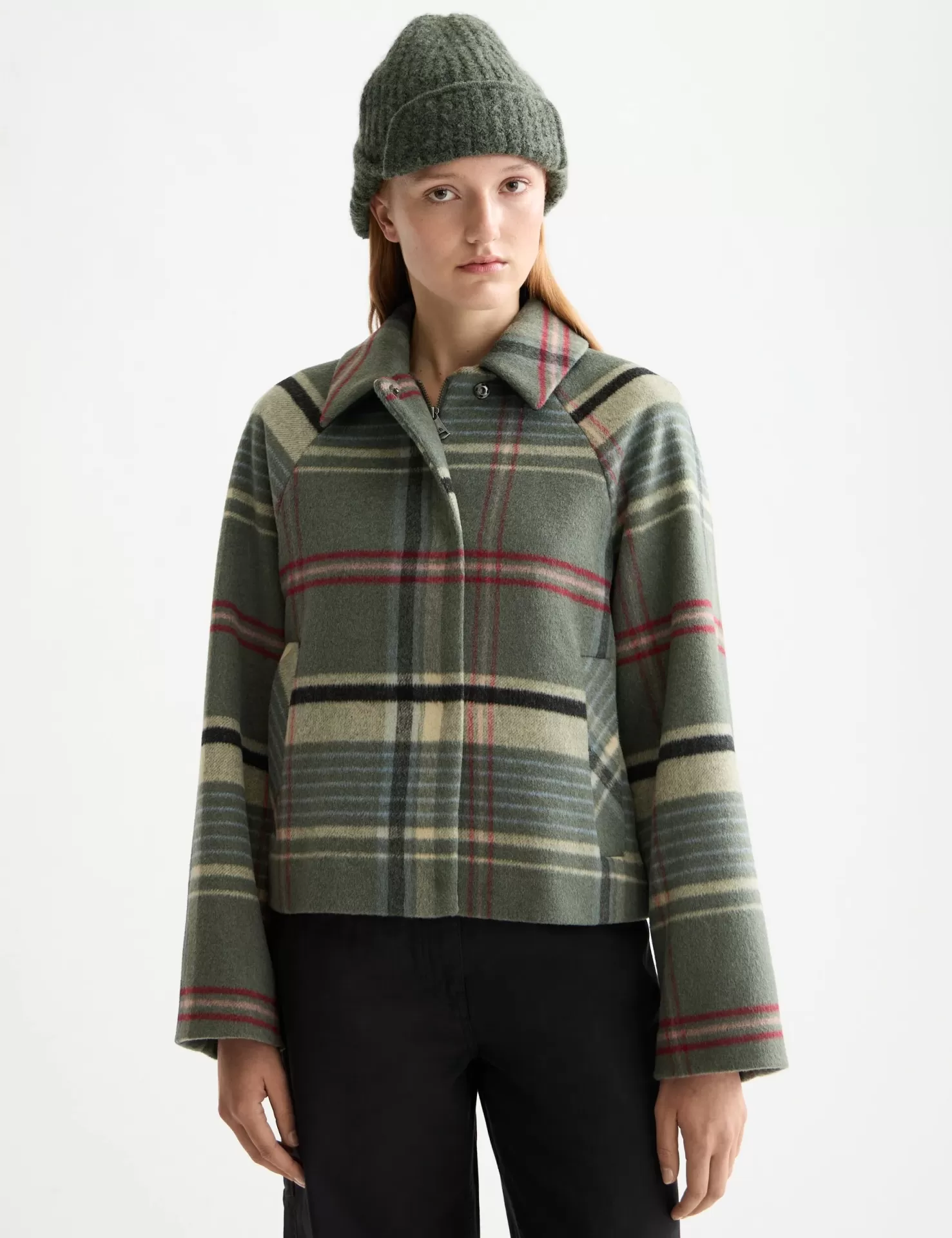 A boxy-cut shirt jacket reimagined with a modern utilitarian aesthetic, perfect for layering across seasons. Crafted in a soft checked wool blend with clean lines and a relaxed silhouette, it combines structure with comfort, making it a versatile wardrobe essential. Its oversized check pattern in earthy tones channels FW25/26’s retro-inspired mood, blending timeless tailoring with effortless street style. Designed to be worn open over knitwear or buttoned up for a more minimal edge, this jacket is a statement in quiet luxury and functional chic.