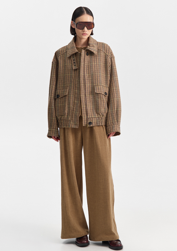 Houndstooth returns as a key print this season, reimagined in oversized, relaxed silhouettes that evoke effortless refinement.