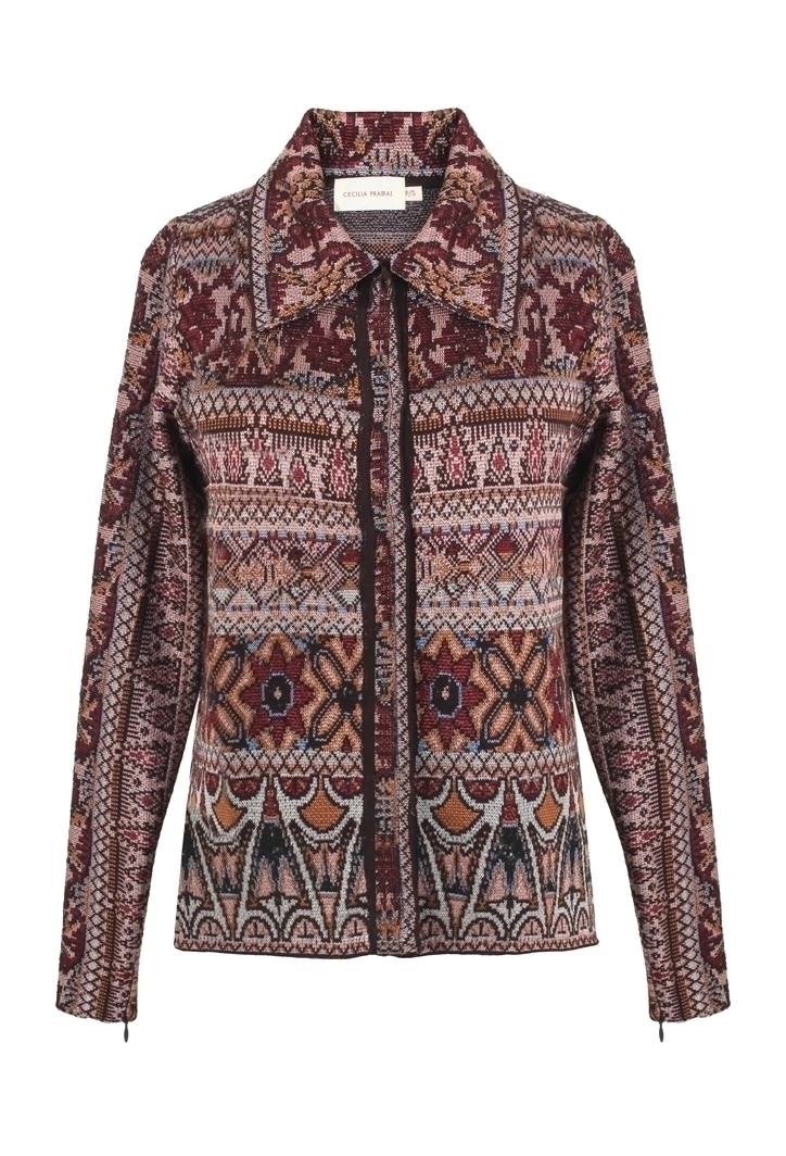 "With rich geometric and floral patterns, this jacket embodies boho chic: comfort, sophistication and effortless style in every detail."