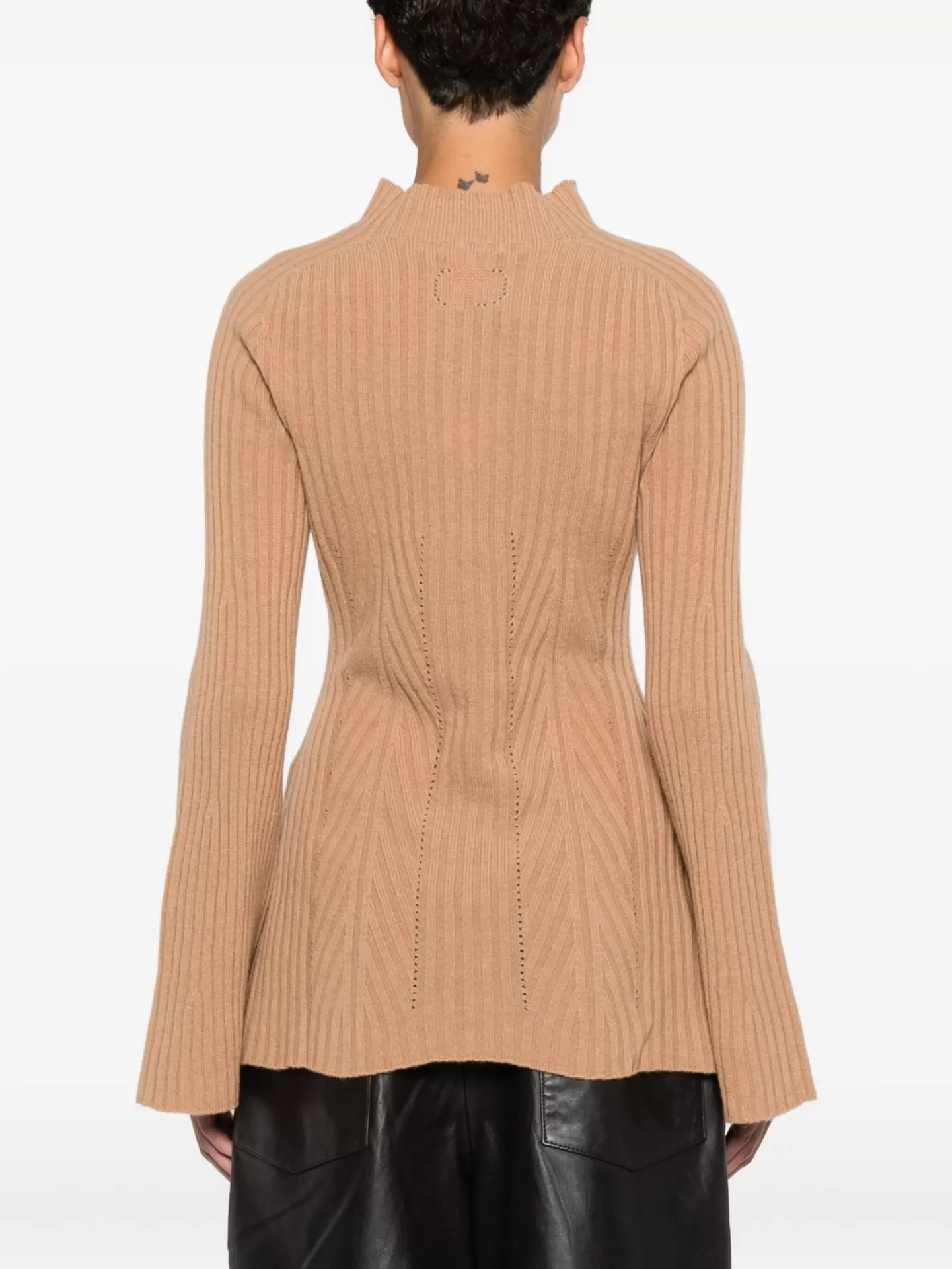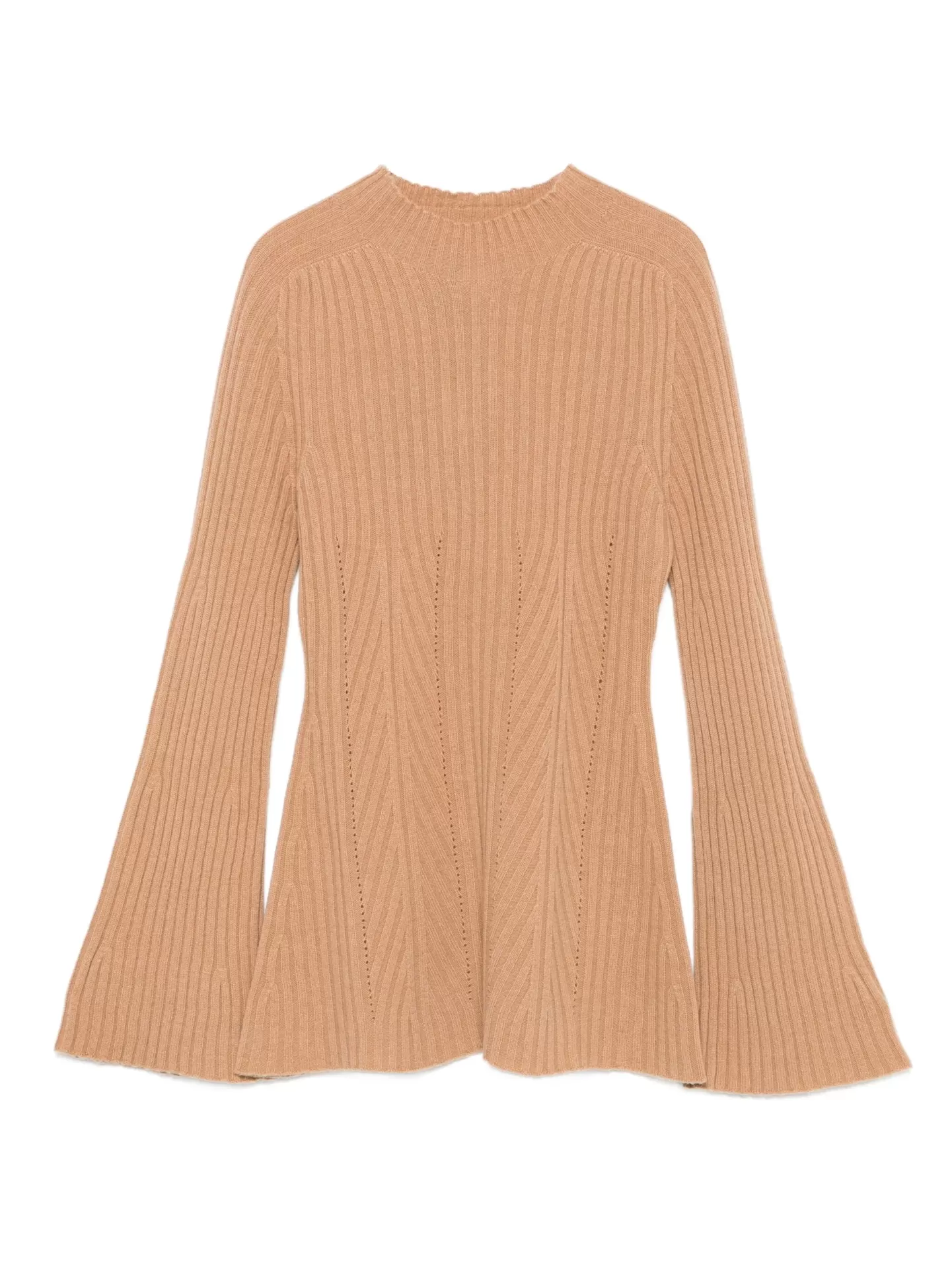 Twinset sweater in 100% cashmere, featuring a ribbed knit, bell sleeves, and a subtle high neckline.