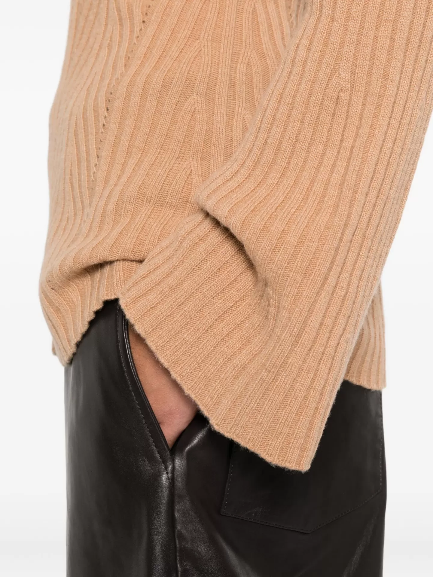 Camisola Twinset em malha canelada 100% caxemira, num tom camel suave e luminoso.