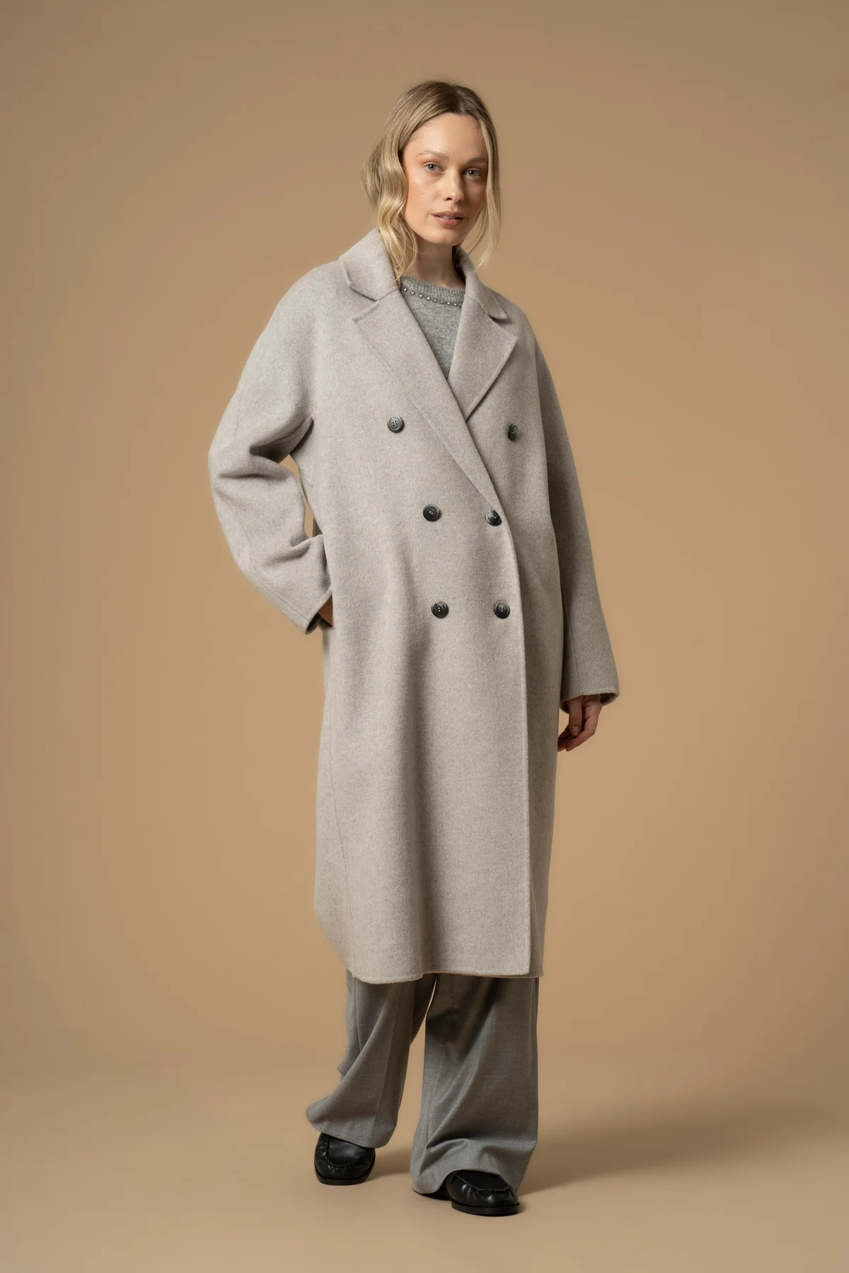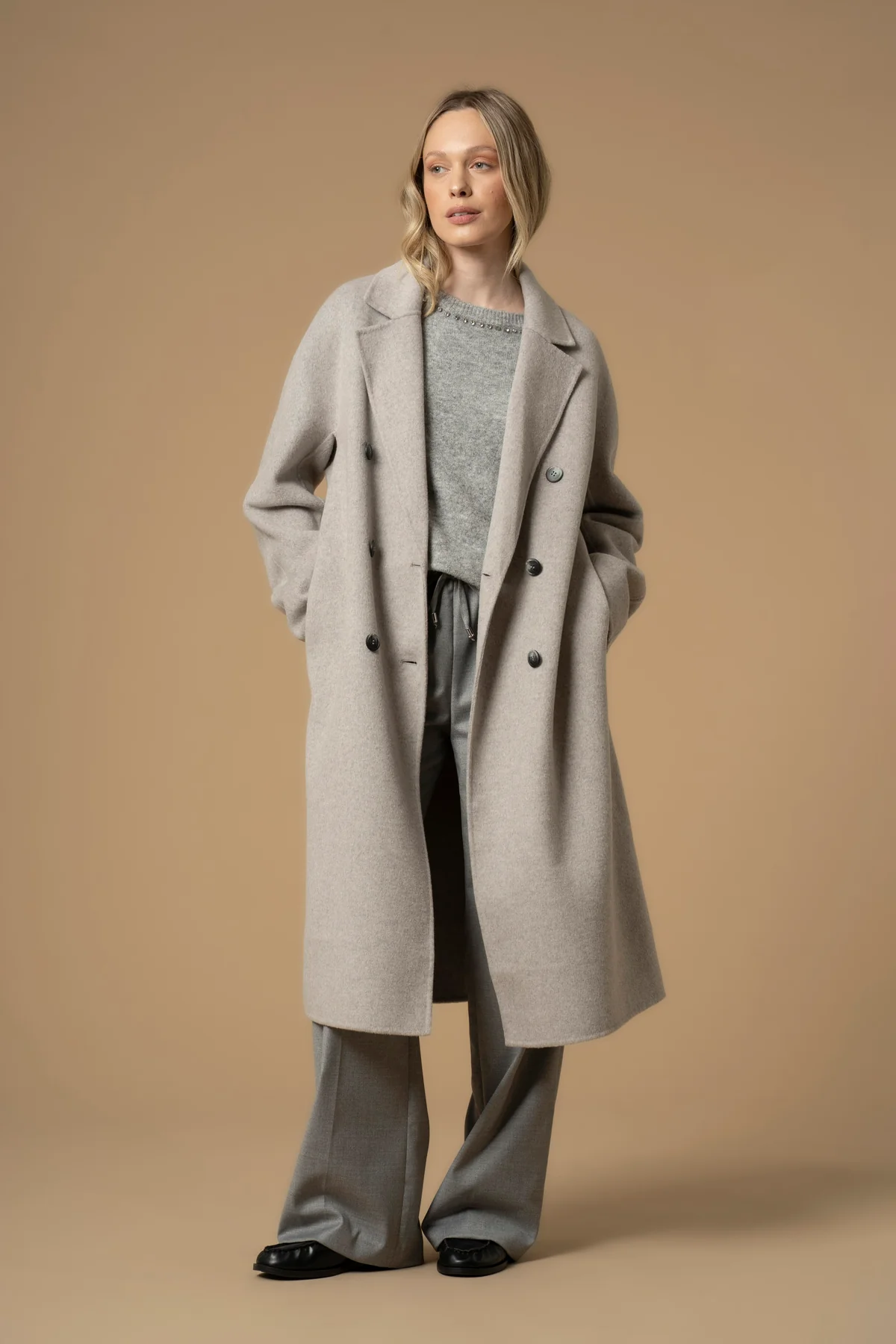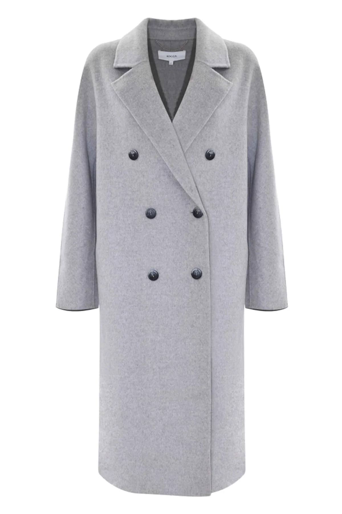 Refined and effortlessly elegant, this wool-blend long coat from Kocca’s Pure Verve Capsule collection embodies timeless sophistication. Designed in a soft greige tone, it features a slim fit cut, double-breasted closure with six buttons, wide cuffs, and structured lapels — offering a clean, modern silhouette ideal for the FW25/26 season.