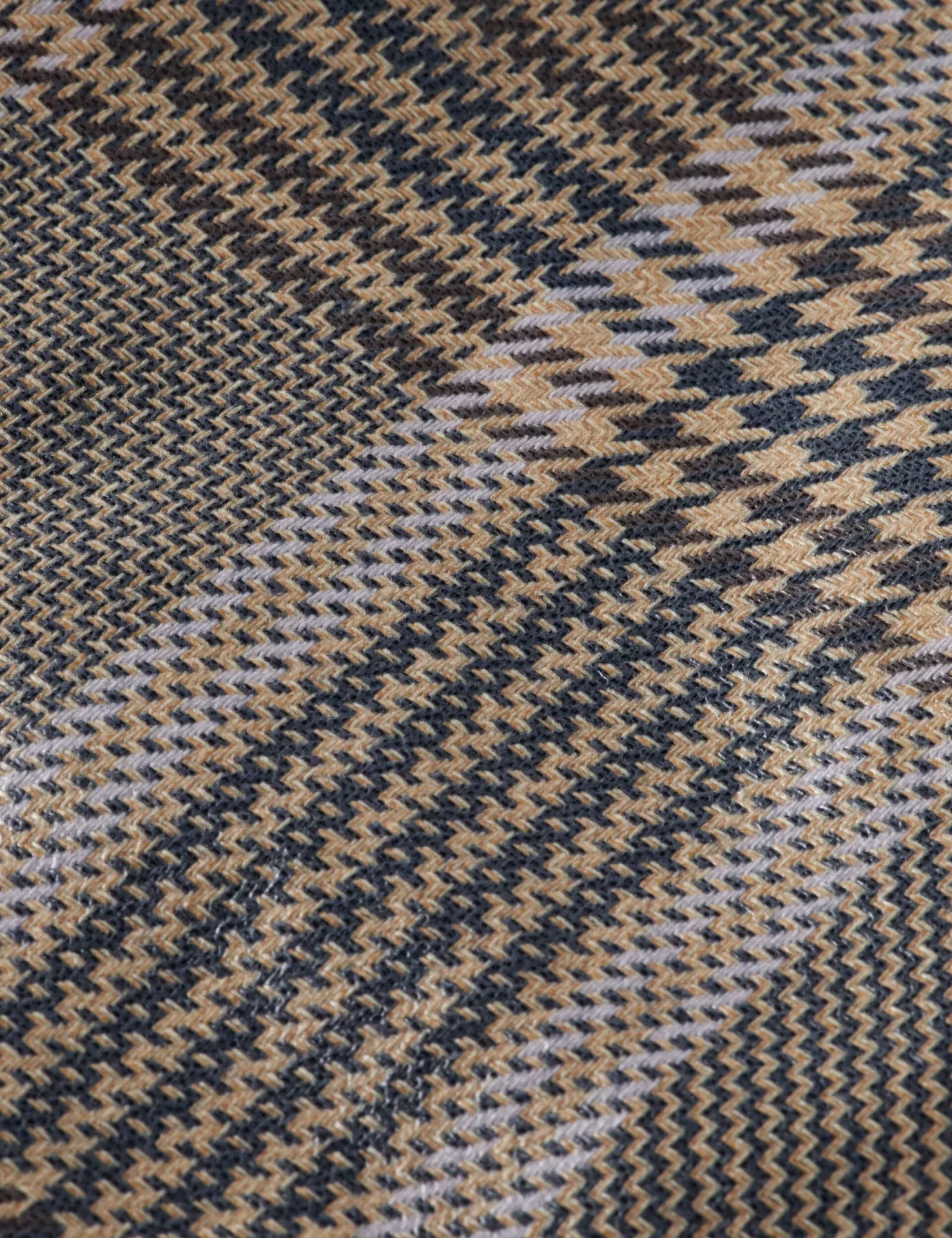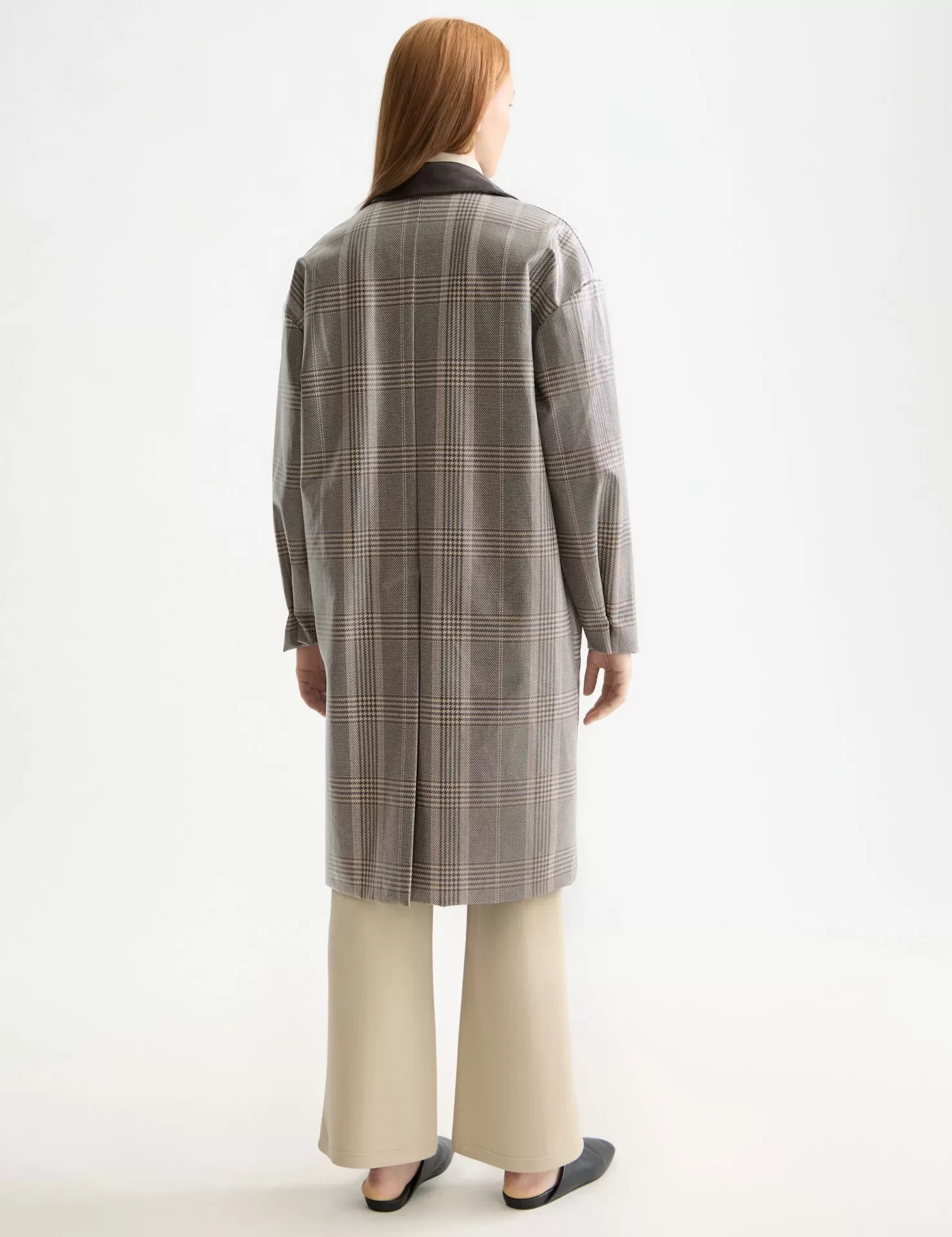 This checked cotton coated raincoat stands out as a key piece for the FW25/26 season, where classic tailoring merges seamlessly with technical functionality. The timeless Prince of Wales check reflects the return of traditional codes reinterpreted with a modern twist. A contrasting collar adds a contemporary edge, aligned with the season’s emphasis on texture play and refined detailing. The clean, straight silhouette resonates with the trend for sober elegance, while the water-repellent finish answers the growing demand for versatile, urban-ready outerwear. More than just a raincoat, it is a statement piece that embodies heritage, practicality and sophistication in equal measure.
