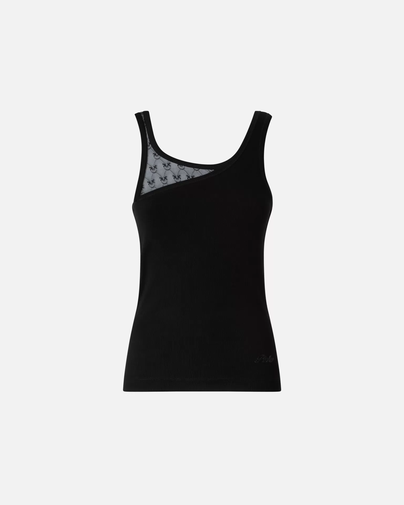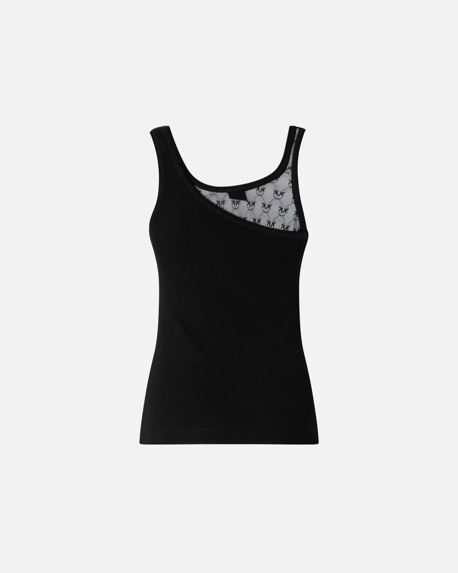A contemporary silhouette that elevates the essentials. This sleeveless Pinko vest top combines a fine stretch cotton base with translucent lace panels featuring the iconic Love Birds logo, creating a subtle dialogue between softness and urban attitude. The round neckline and fitted cut flatter the figure with effortless elegance, perfect for transitioning from day to night.