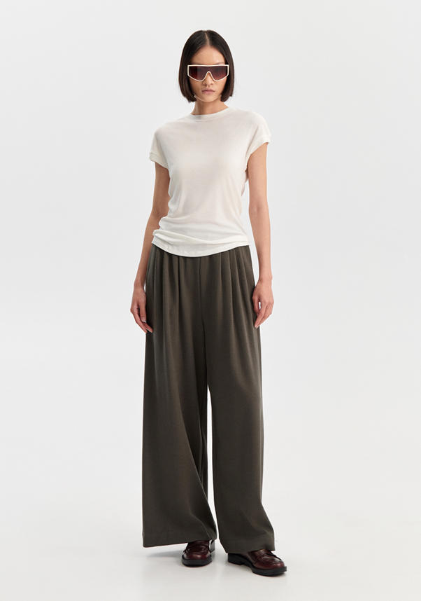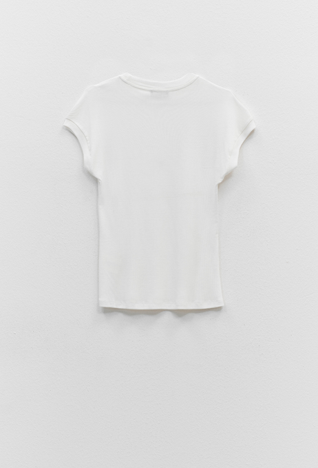 T-shirt em malha de Tencel, lã e elastano, com textura suave e leve brilho natural.