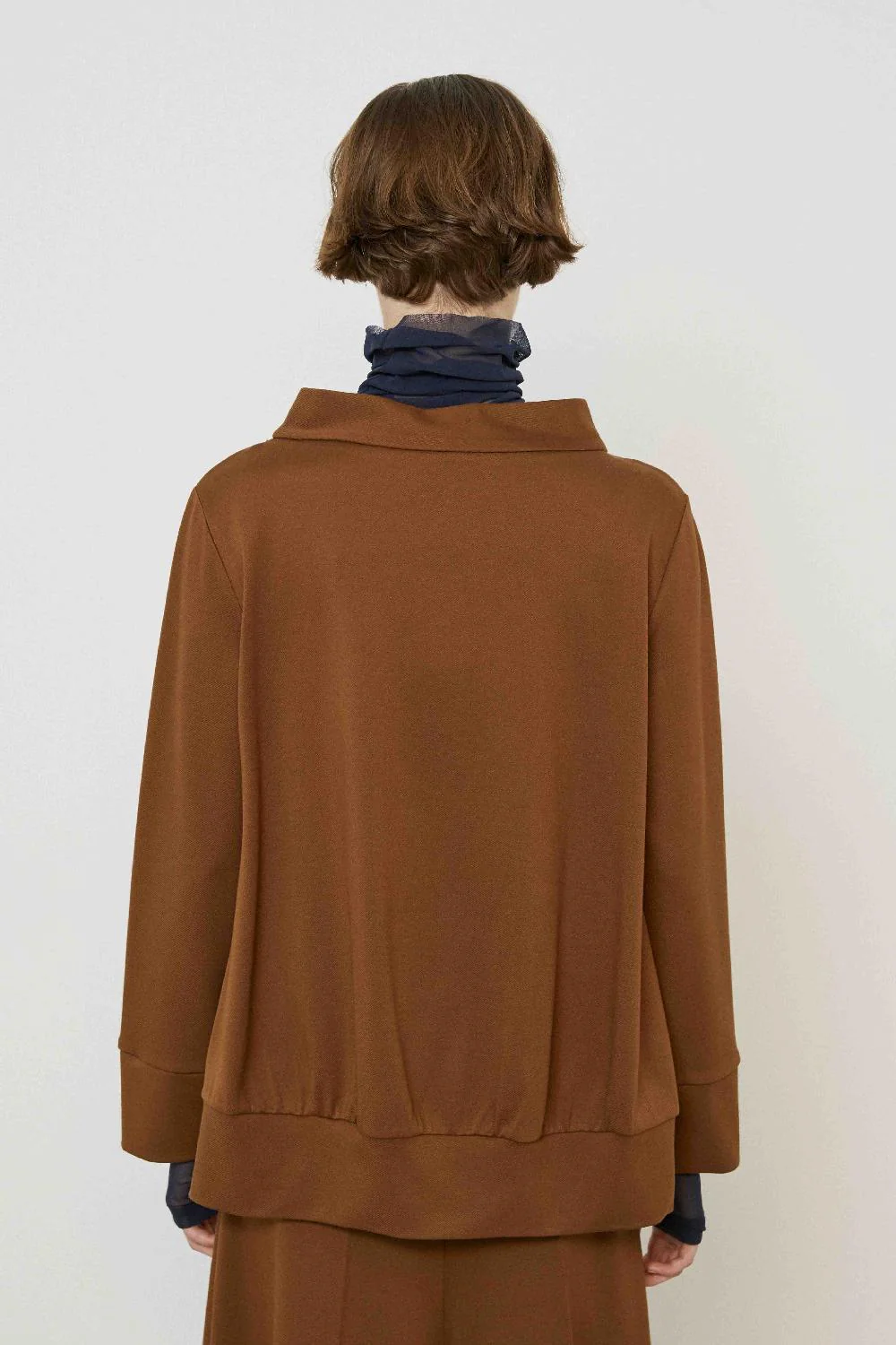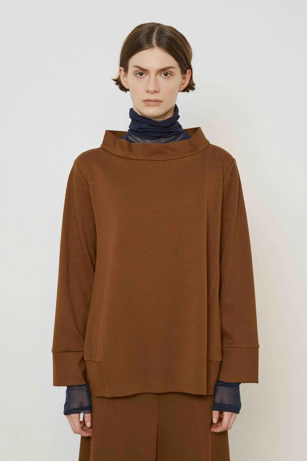 Tabacco flared blouse with crater collar – quiet luxury