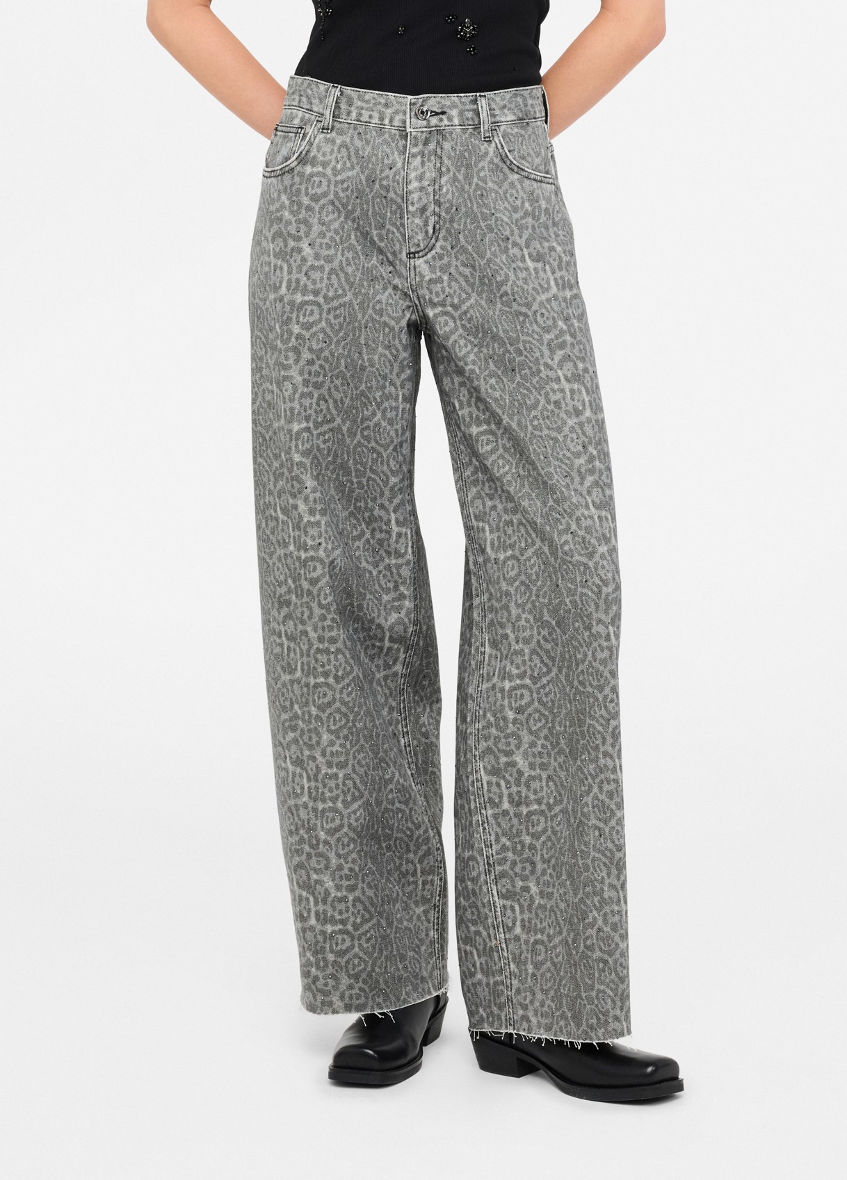 These denim trousers reinterpret the classic animal print with a washed grey effect, striking the perfect balance between urban edge and sophisticated style. Designed with a high waist, wide comfortable leg and functional pockets, they are a statement piece aligned with the wild elegance trend of the FW25/26 season.