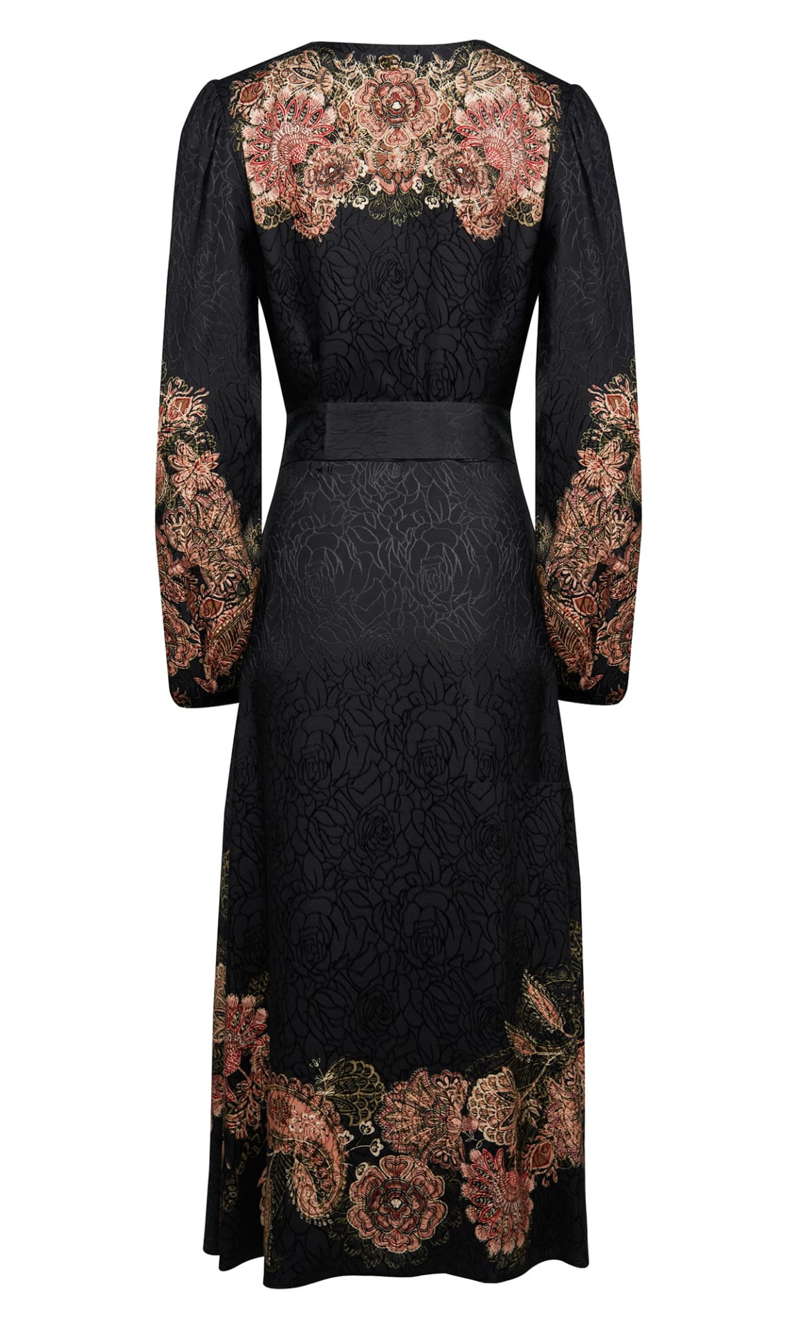 FW25/26 Trends: Dark Romance – baroque florals, soft sheen fabrics, and defined waists embody the season’s mood of modern romanticism.