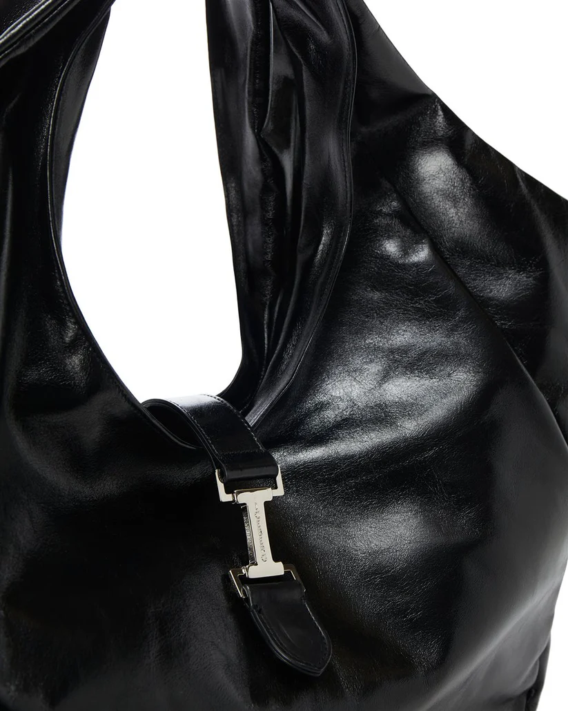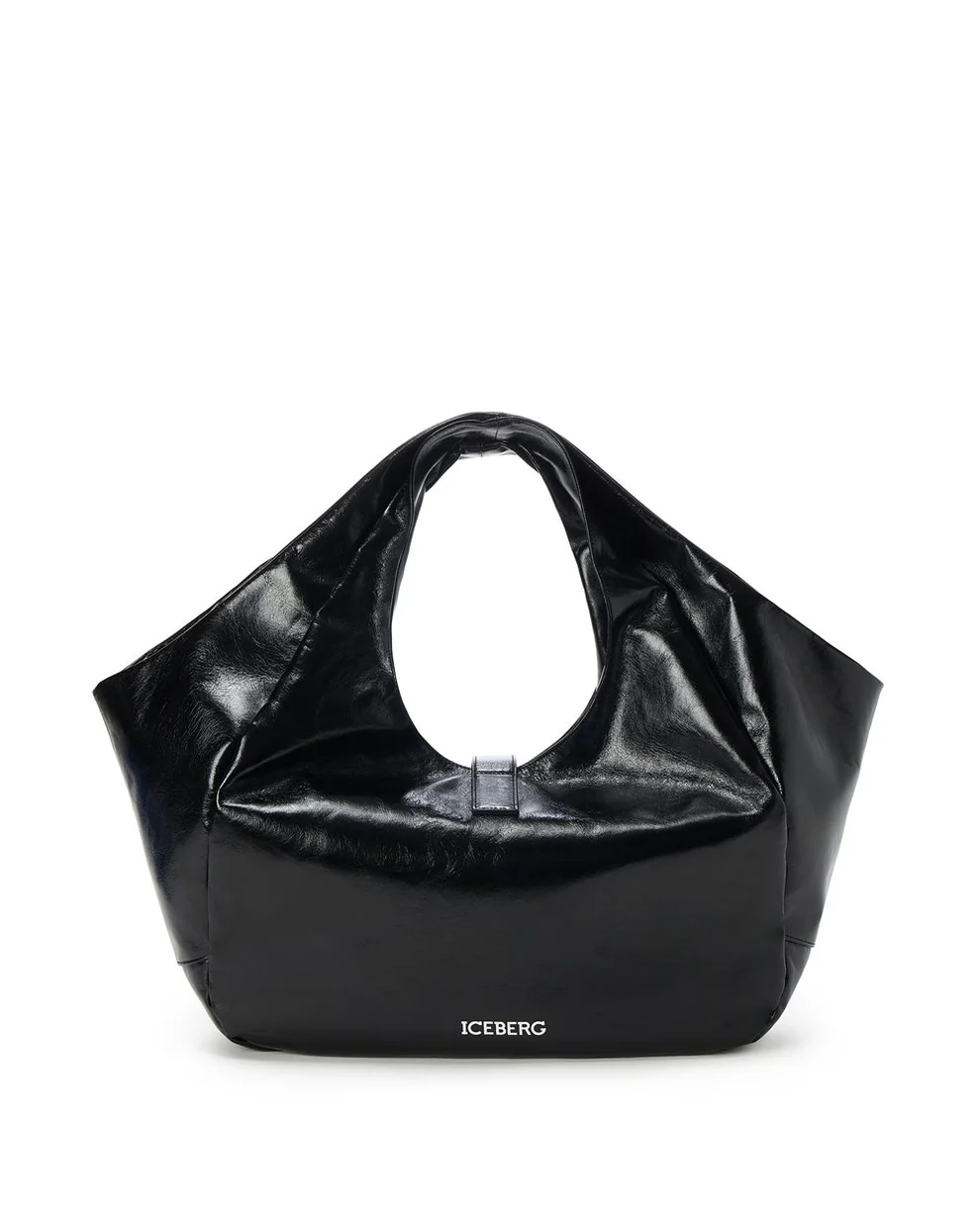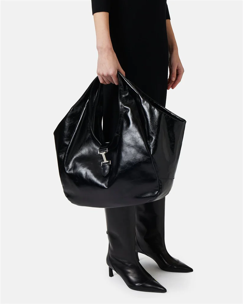 A true emblem of Italian functional luxury, this ICEBERG tote bag is crafted from genuine glossy leather, offering a supple touch and fluid silhouette that balance elegance and modernity. Its sculptural design features integrated handles and a nickel-finished metal clasp shaped into the brand’s signature “I” monogram. The embossed logo at the base adds a minimalist and refined touch.