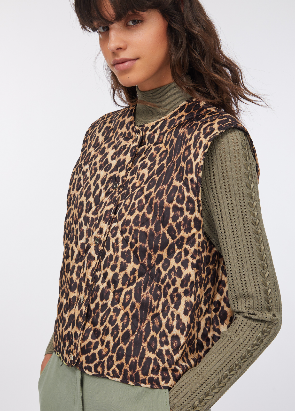 Wear it over a flowy printed dress to balance utilitarian structure with femininity.