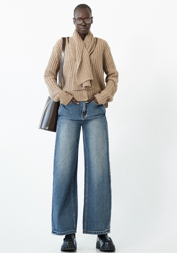 A mistura de fibras — com mohair e lã — oferece toque suave e calor sem peso, tornando-o ideal para coordenados de meia-estação ou camadas urbanas elegantes.