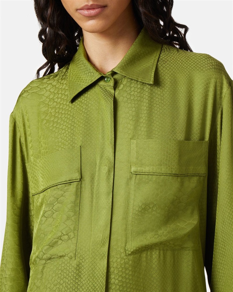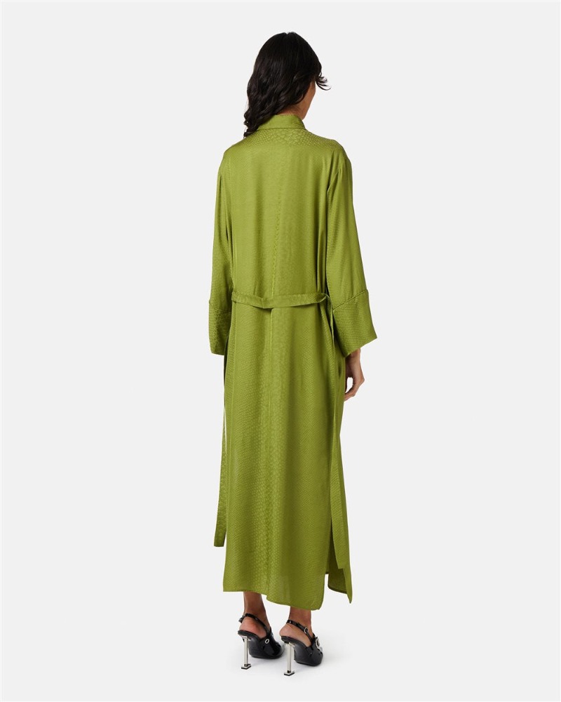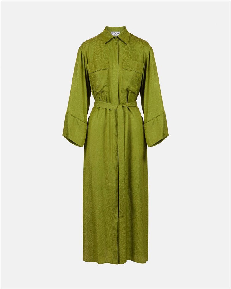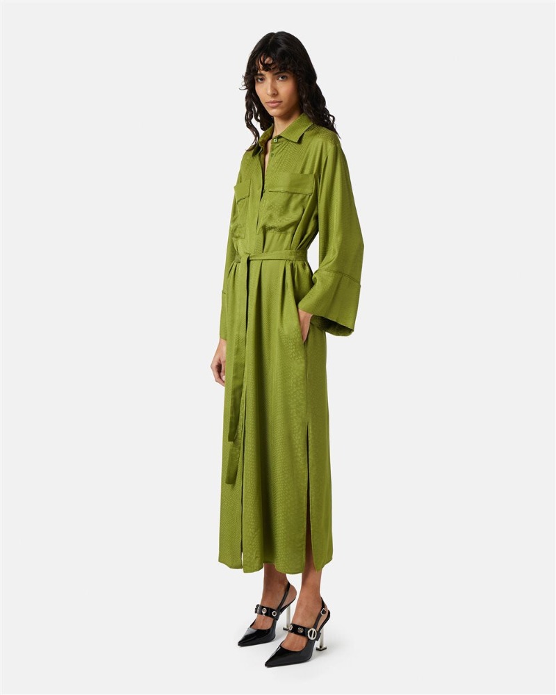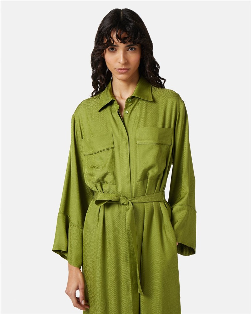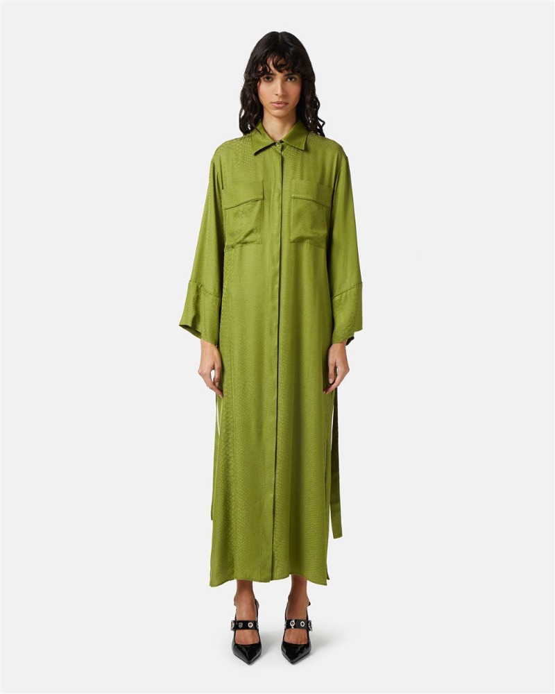 Lime Green Silk Shirt Dress with Snake Texture