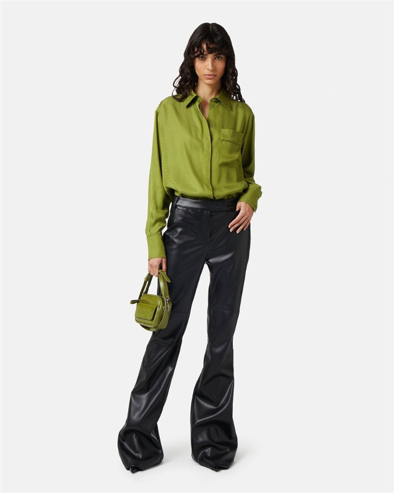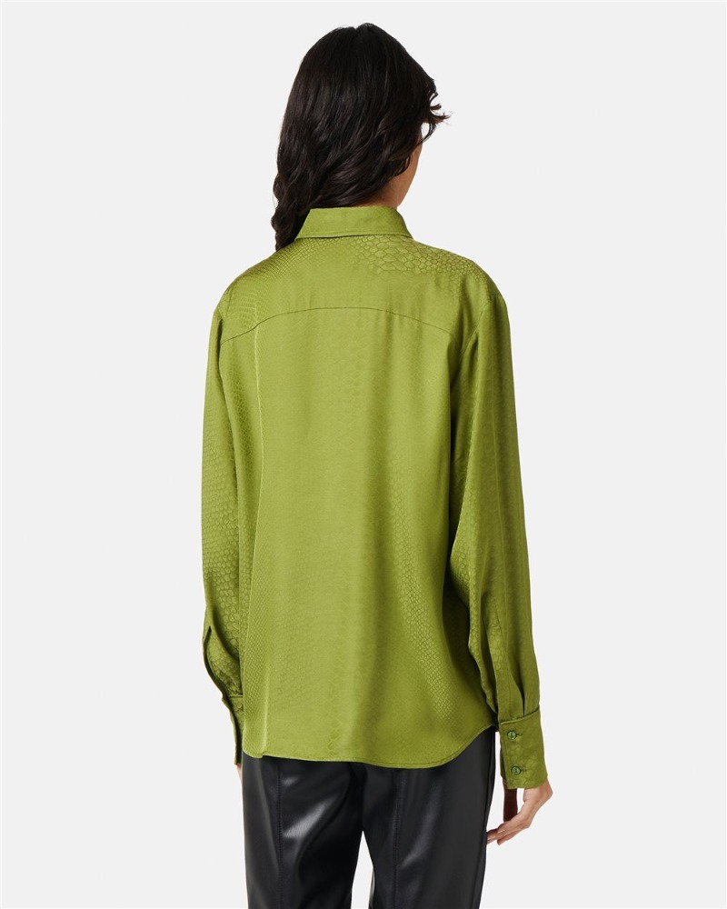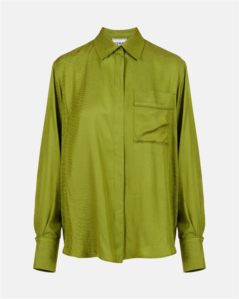 Camisa ICEBERG em seda pura com textura subtil em padrão snake e acabamento acetinado. O corte solto e o brilho controlado do tecido conferem um toque sofisticado e urbano, característico da marca italiana.