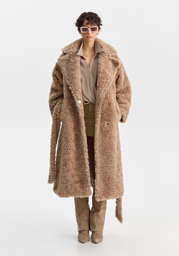 The oversized teddy coat is an icon of the season: generous volume, cosy texture and effortless elegance.