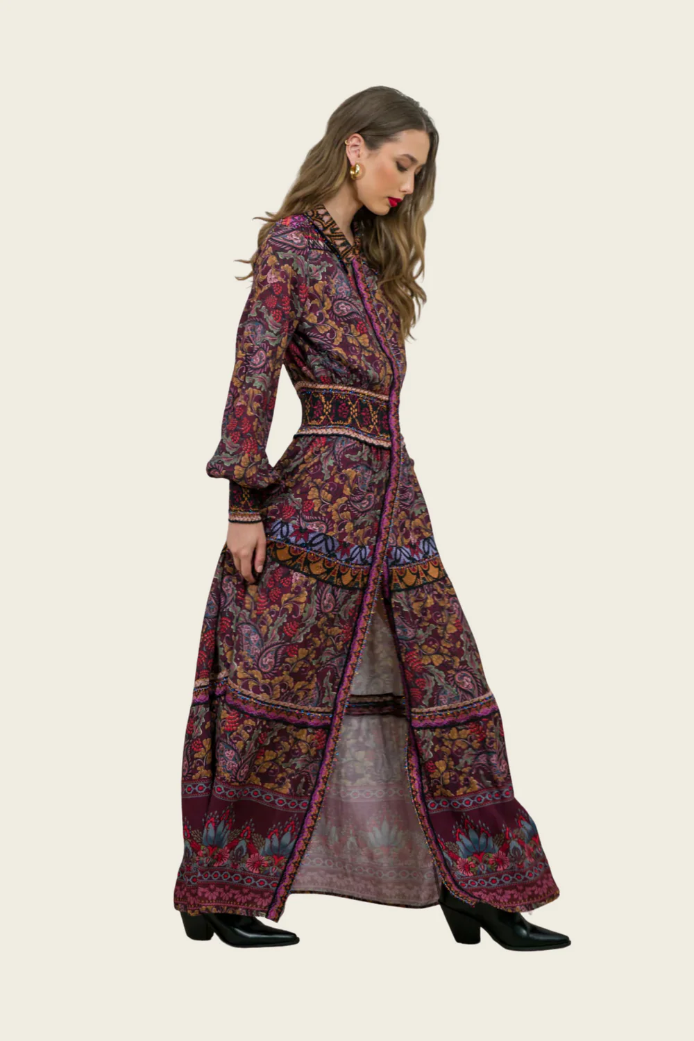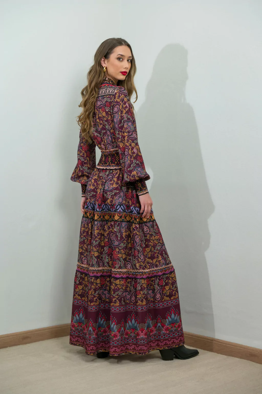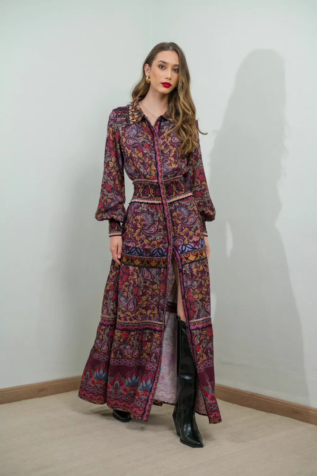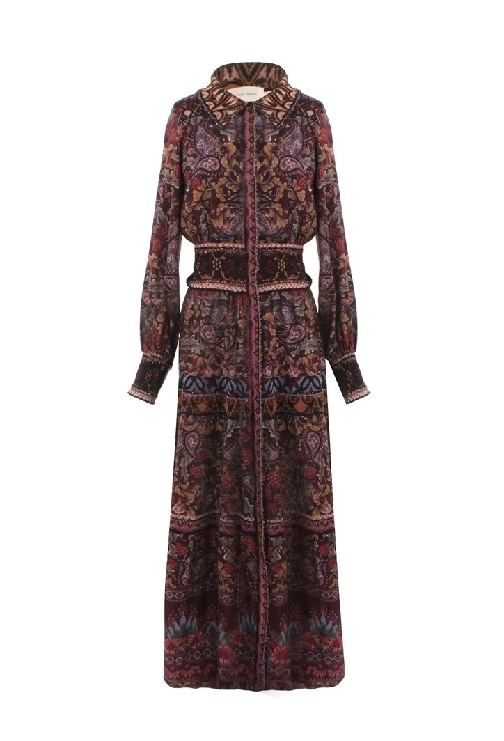 Long printed jacquard chemise dress — timeless bohemian elegance by Cecilia Prado.