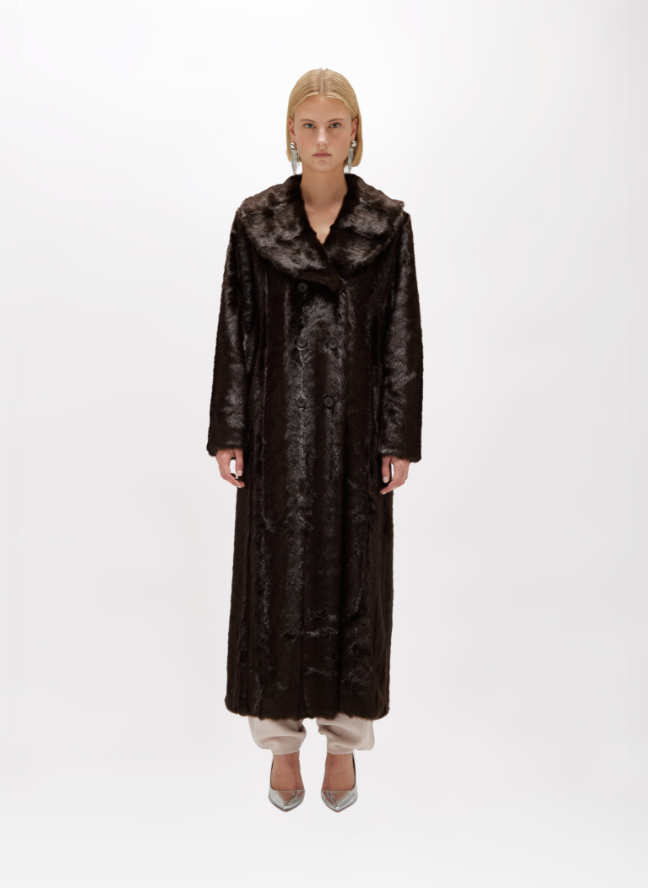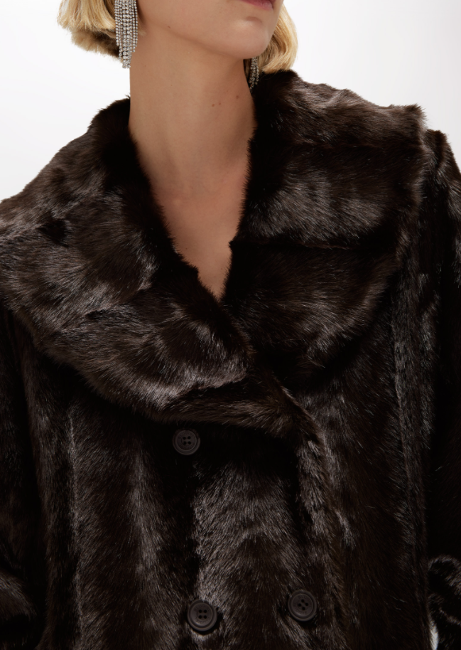 The timeless charm of the faux fur coat, reimagined in a supremely chic version.