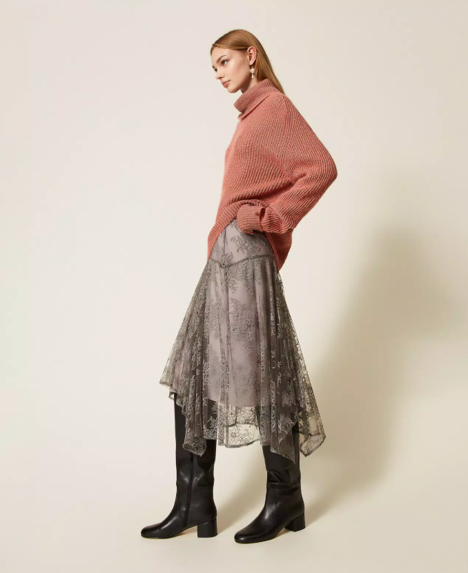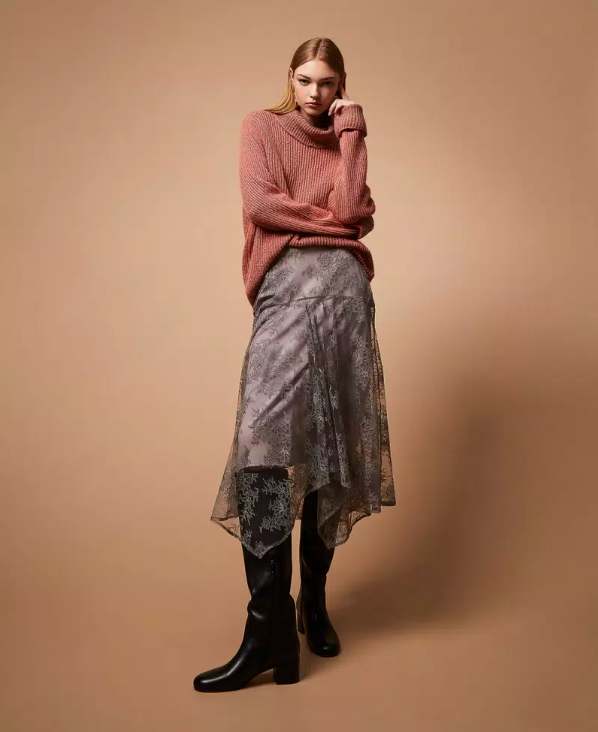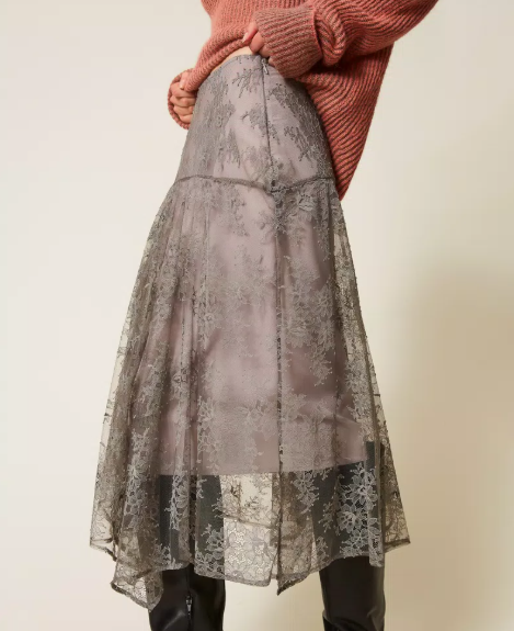 Embracing this season’s key trends — lace, sheer fabrics and fluid cuts — this skirt blends romantic details with a modern attitude and a refined boho touch.