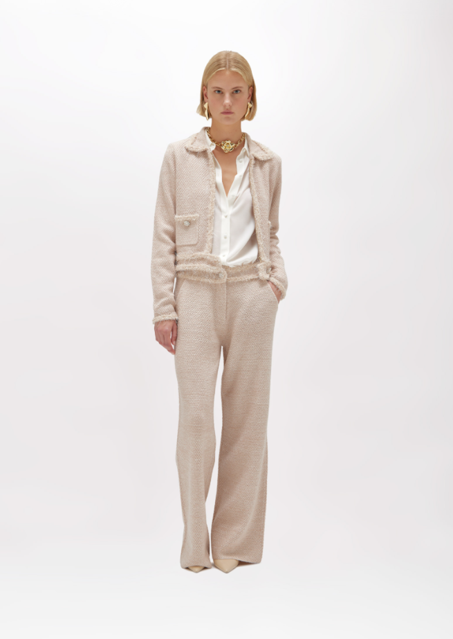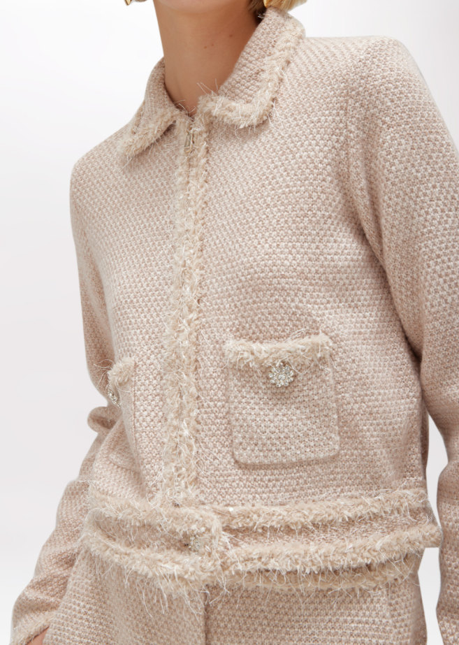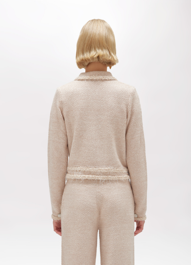 A refined, tactile piece that blends comfort and understated luxury — perfect when paired with the matching skirt or trousers.