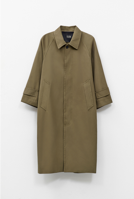 The structured yet fluid design embodies ELEH’s minimalist elegance, while the military green tone introduces a timeless utilitarian edge.