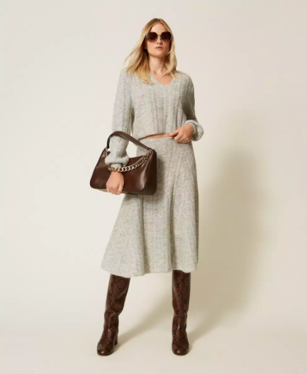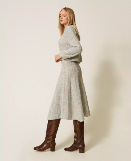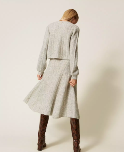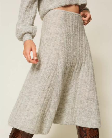 Saia Twinset em misto de mohair e lurex, com malha de canelado largo e cintura elástica que se adapta suavemente à silhueta.