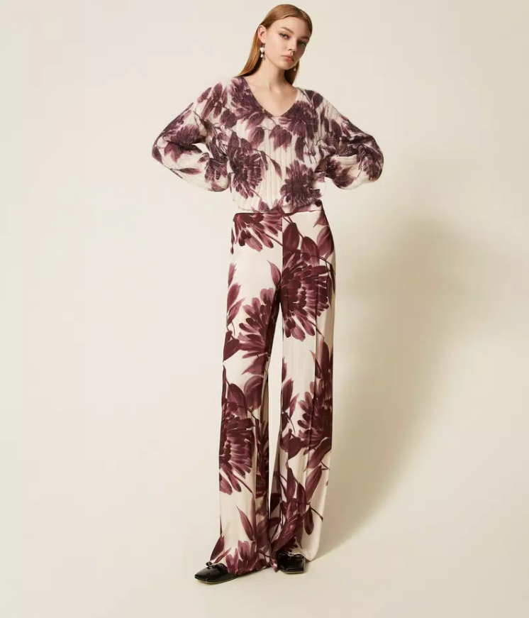 As flores de inverno ganham força nas passerelles — o dahlia print em tons vínicos e creme destaca-se como símbolo da feminilidade melancólica que marca a estação. As malhas felpudas e texturadas em mohair continuam entre as mais desejadas, evocando nostalgia e aconchego com um toque de sofisticação artística.