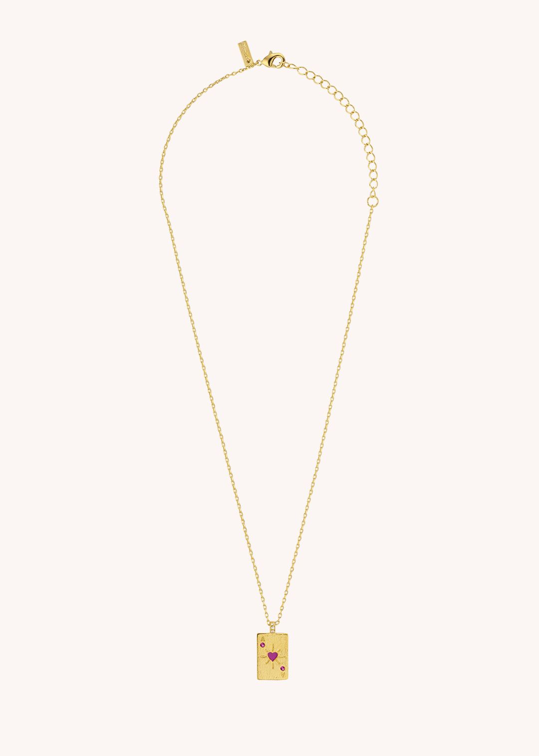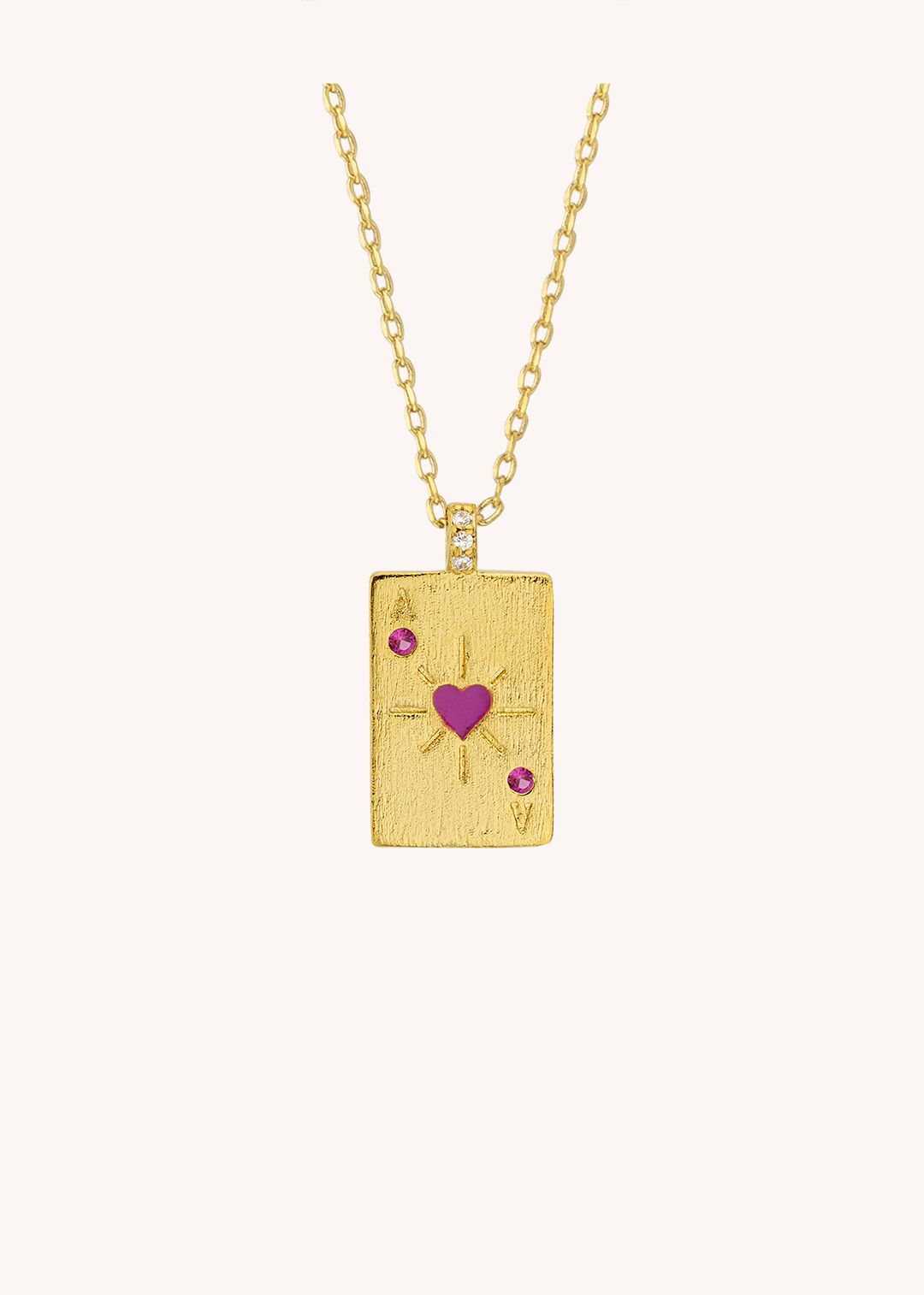 Inspired by the card game symbol, its pink enamel heart pendant embodies joy, spontaneity, and love in all its forms — from romance to self-expression.