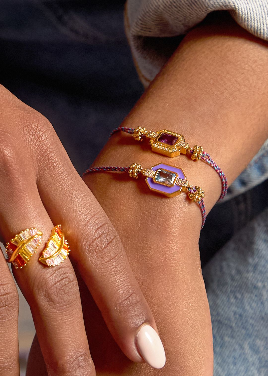 A pulseira Améthyste Shiny Art Déco da MYA BAY é uma ode ao brilho e à cor.