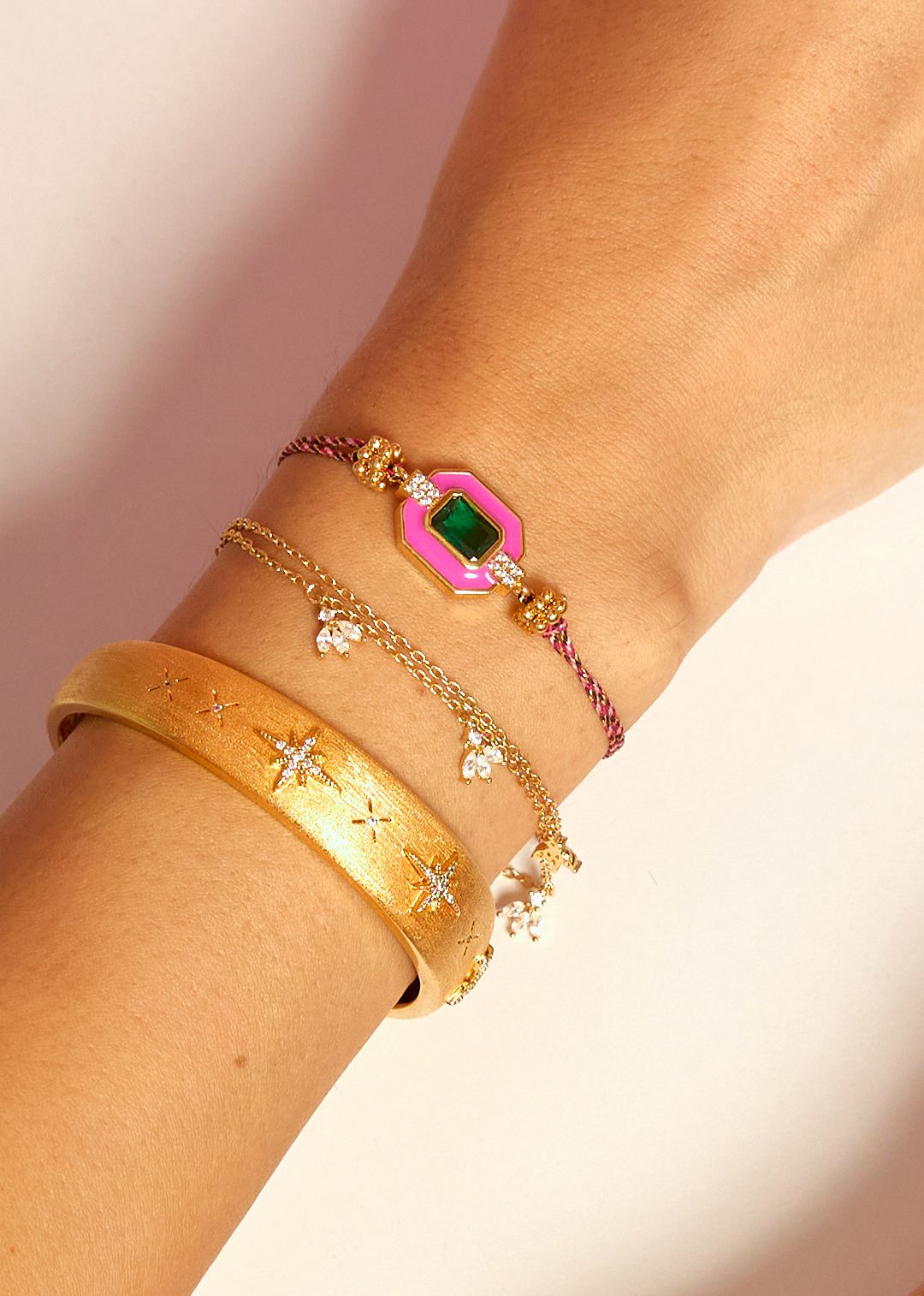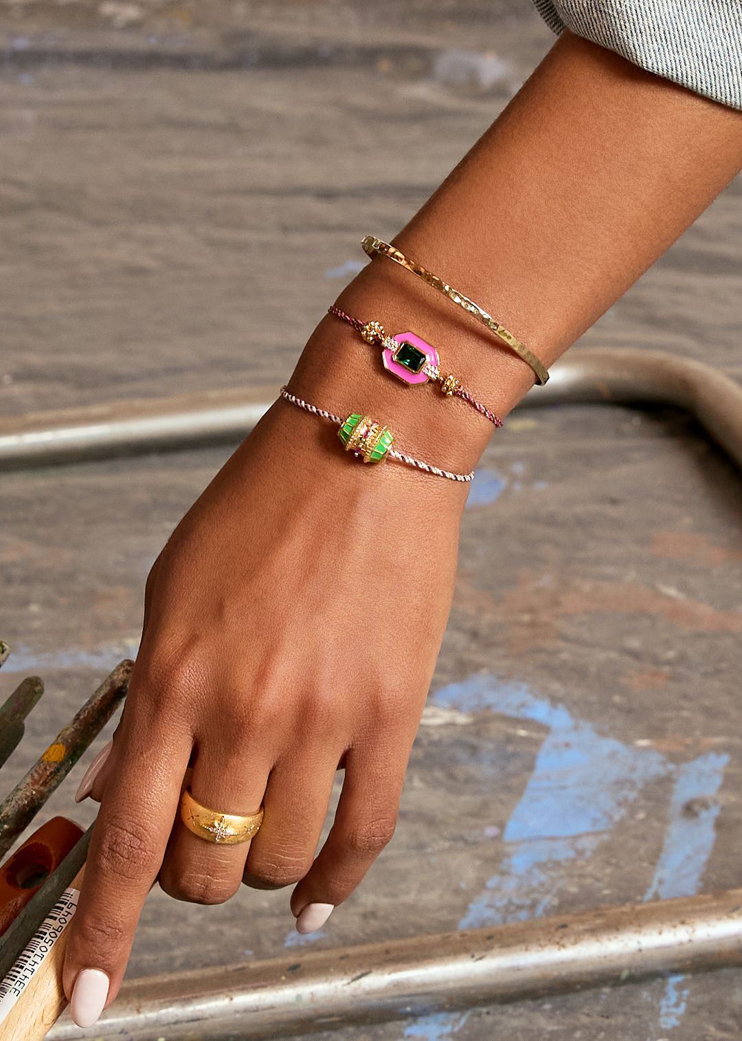 The Fuchsia Art Déco bracelet by MYA BAY, gilded with 24-carat recycled fine gold, is all about colour, contrast, and confidence.