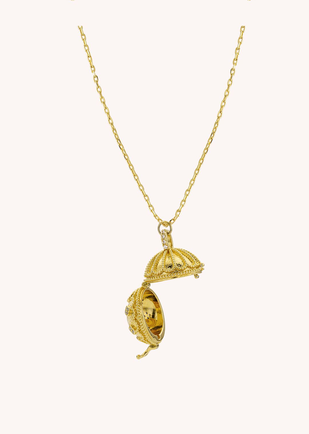 The Gold Protection necklace by MYA BAY, gilded with recycled 24-carat fine gold, hides a secret you can keep close to your heart.