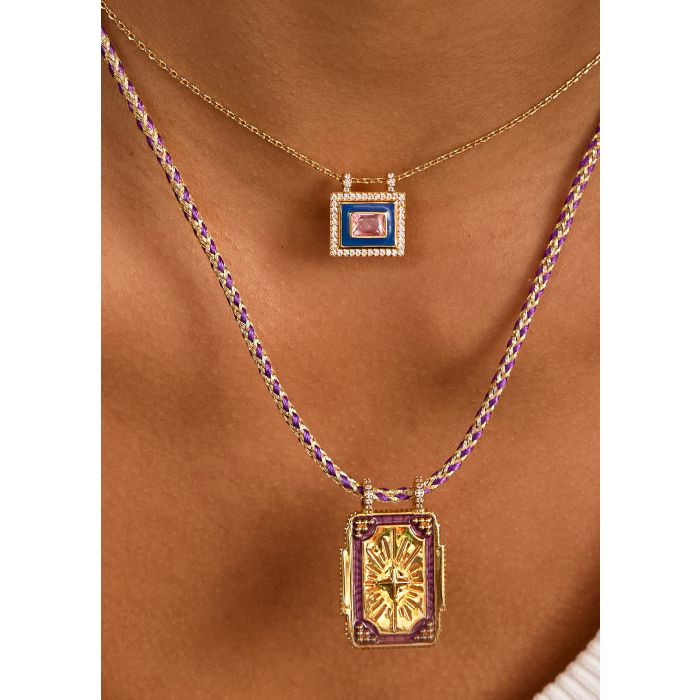O seu pendente retangular em esmalte azul-marinho e pedra central turquesa refletem o espírito livre do deserto texano e a energia vibrante da estética mexicana.