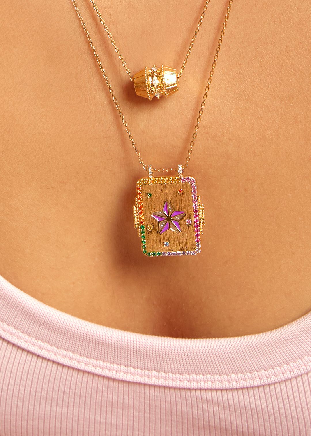 Surrounded by multicoloured gemstones, this piece radiates vibrant, free-spirited energy — a true talisman for modern wanderers.