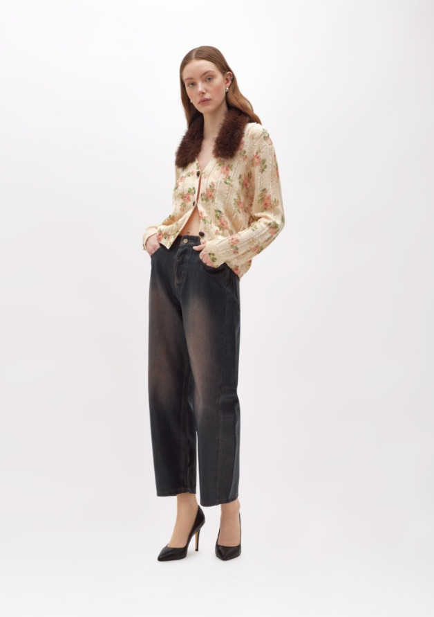 Adicione um toque gráfico ao seu look com este cardigan em mistura de lã canelada, com fios soltos e estampado de rosas. Tornado único pelo icónico colar removível em pelo sintético, apresenta fecho com botões cobertos para um efeito loden, mangas compridas e uma silhueta suave. Perfeito para looks do dia à noite.