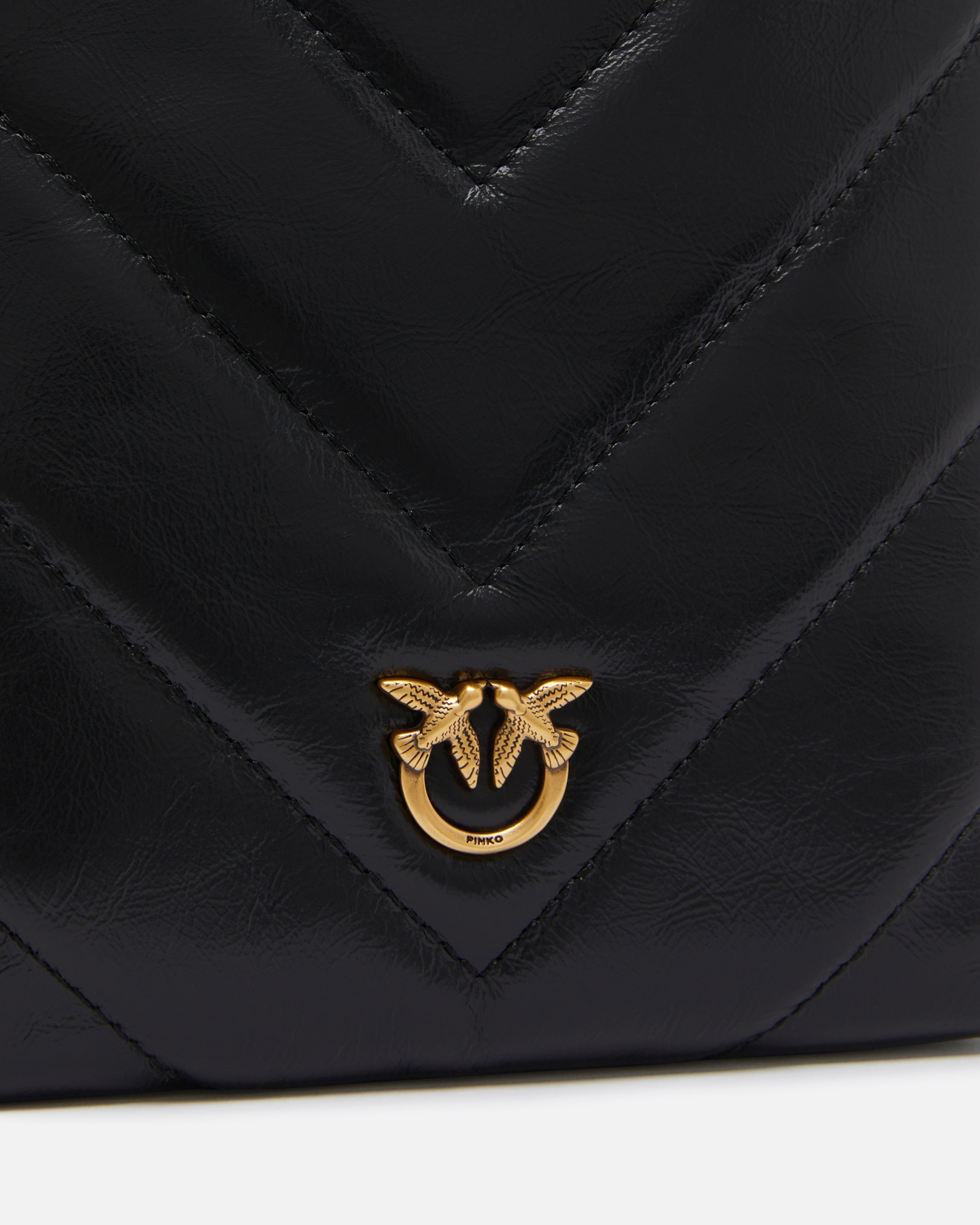 Featuring a fixed gold-tone chain strap for shoulder or crossbody wear, this piece is both elegant and practical. The magnetic fastening ensures functionality, while the signature Love Birds metal plaque adds a distinctive PINKO touch.