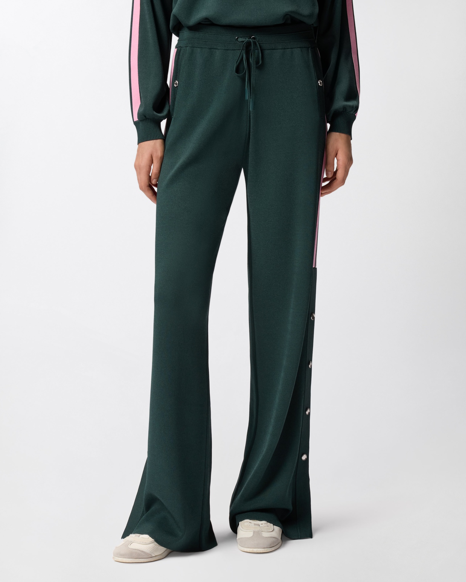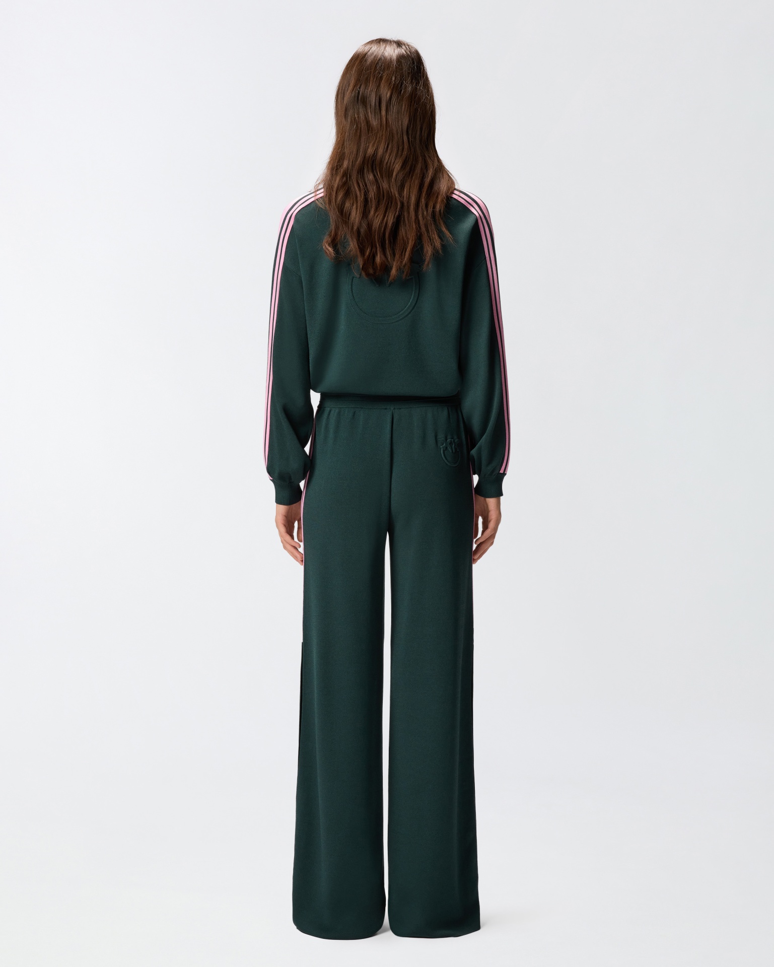 Tracksuit-style sports trousers in technical piqué fabric with a fleece-effect finish. Designed with practical side pockets and a contrasting side band running down the wide leg.