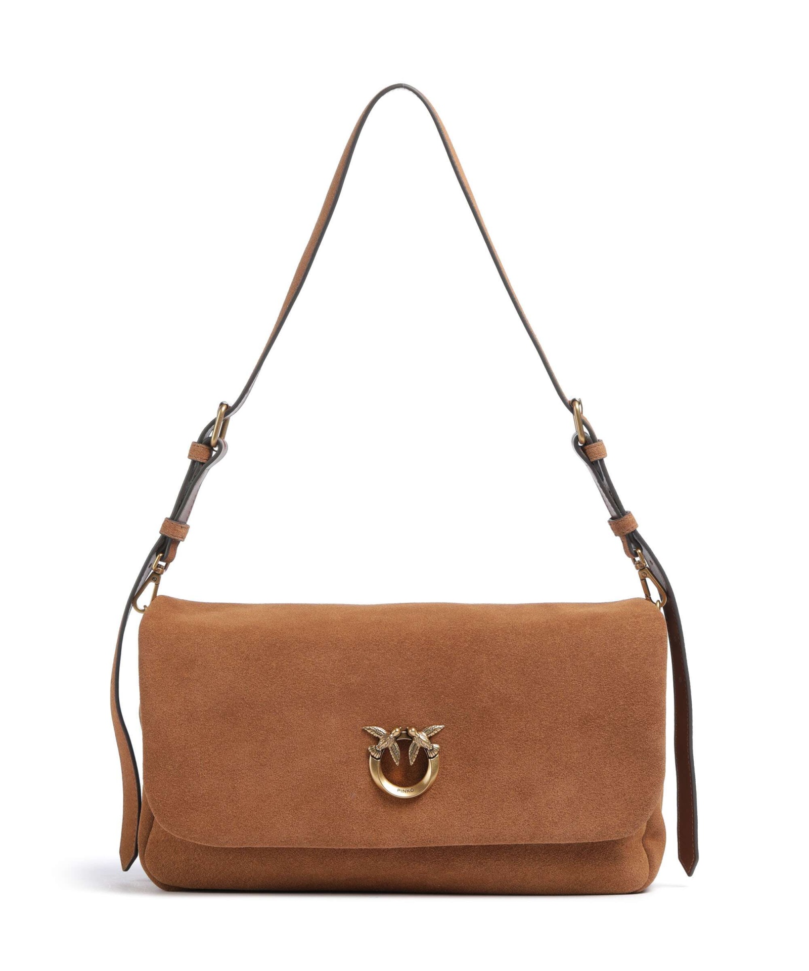 PINKO’s Click Soft Horizontal comes in a suede version that instantly adds warmth and texture to everyday styling. The sleek horizontal shape feels modern and effortless, while the front flap keeps the silhouette clean and structured. Finished with the iconic Love Birds metal buckle, it’s a subtle statement piece: practical, lightweight, and unmistakably PINKO.