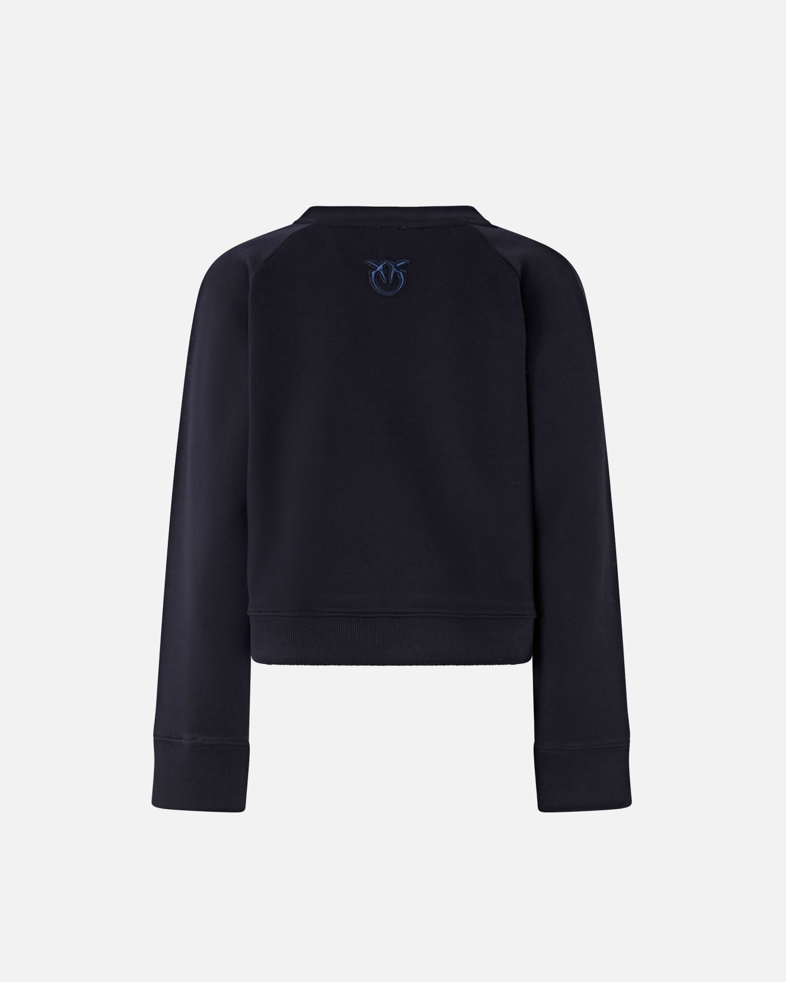 EN: Cotton sweatshirt with a slightly cropped fit and raglan sleeves, featuring a V-shaped insert at the crewneck and gold metal buttons with star engravings on the shoulder. Finished with an embroidered Love Birds logo on the back, adding an iconic PINKO touch. Versatile and modern, blending comfort with contemporary flair.