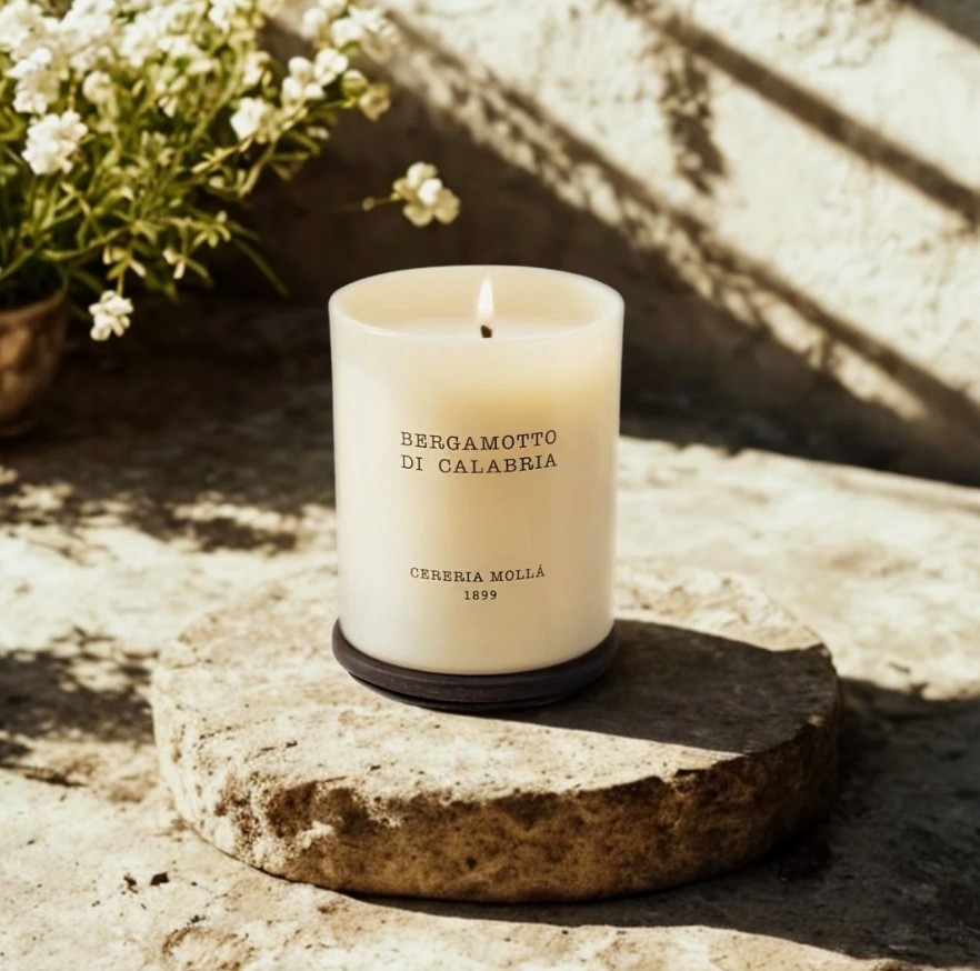 O aroma Bergamotto di Calabria transporta nos instantameamente para os campos ensolarados da Calábria com o seu aro,a frutado de bergamota fundida com sândalo, cardamomo e lima. Esta fragrância fresca e energizante evoca a brisa mediterrânica , enchendo a sua casa com uma sensação revitalizante e estimulante.