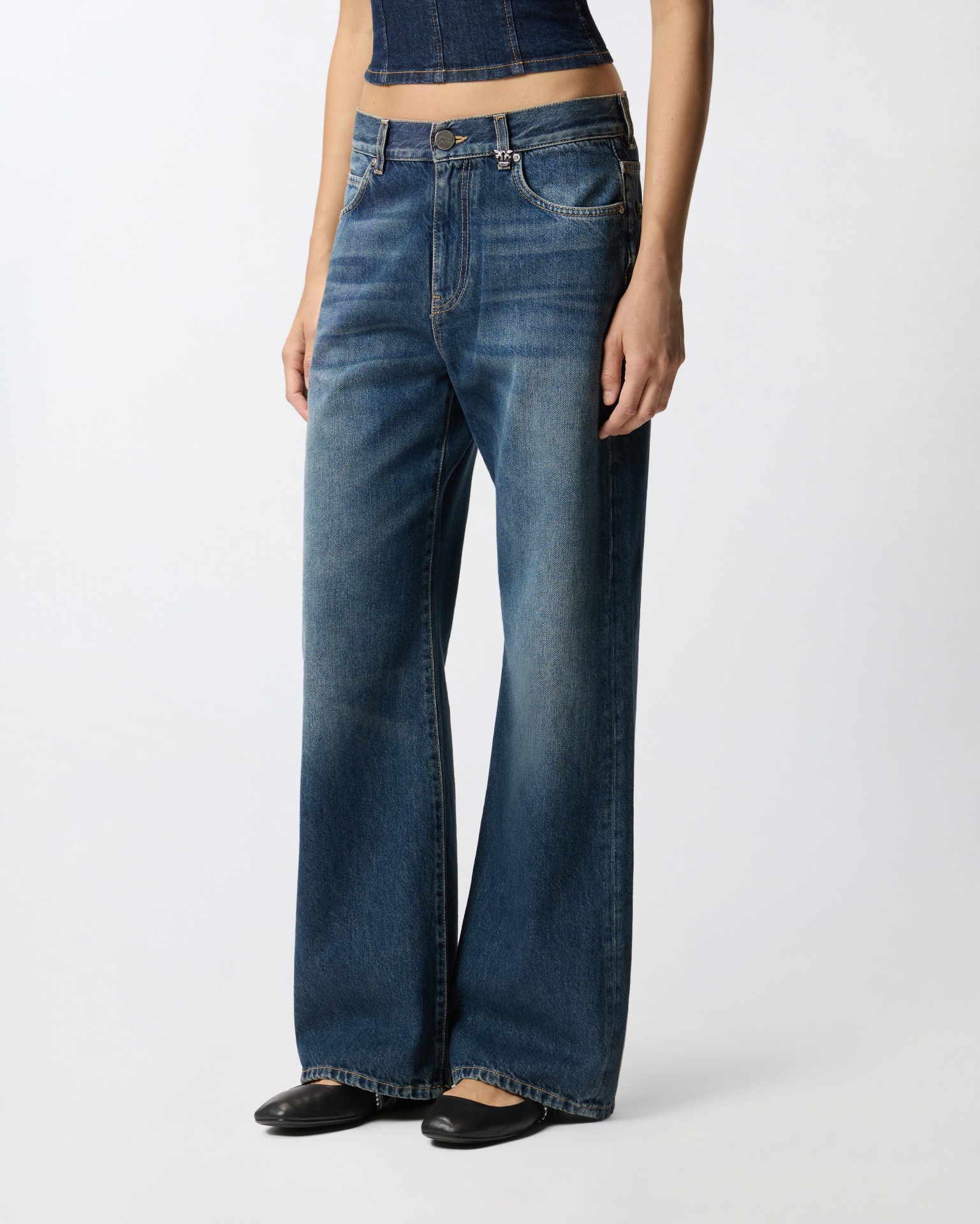 O lavado stonewash confere um ar vintage e natural, enquanto os bordados com o logótipo PINKO e o icónico Love Birds no bolso traseiro adicionam um toque de exclusividade.