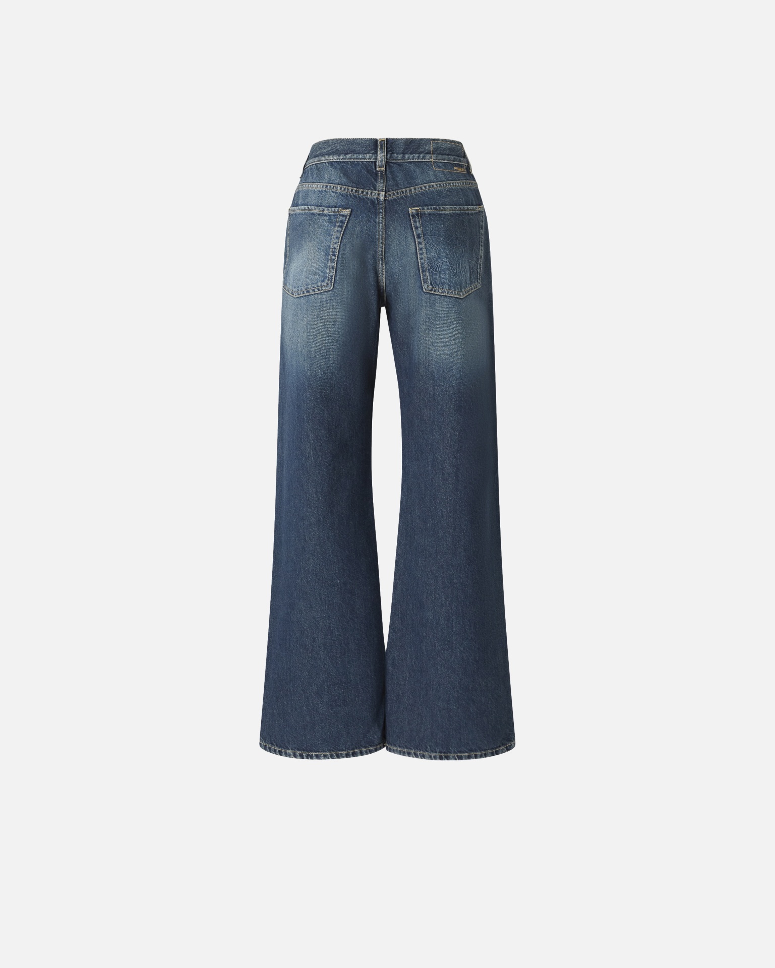 Jeans de cinco bolsos com perna larga e corte direito, confecionadas em denim fluido de lyocell e algodão, oferecendo um caimento leve e confortável.